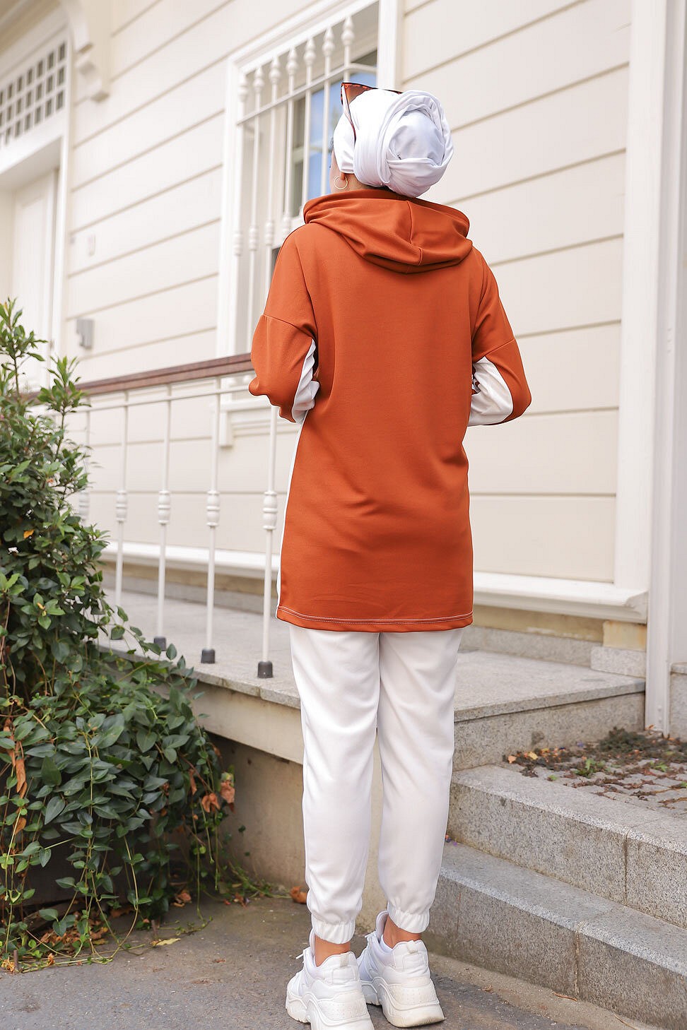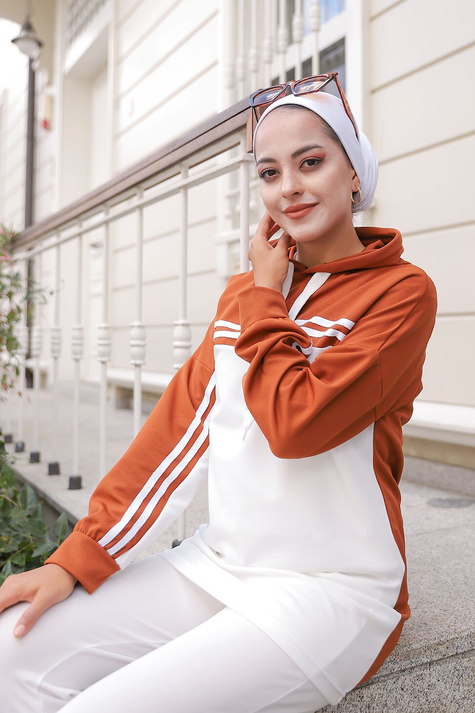 Survêtement tricolore à capuche imprimé "Breathe" (Vetement hijab décontracté et sport) - Couleur Rouille, noir et blanc - REF. 33125 (29.90 €)