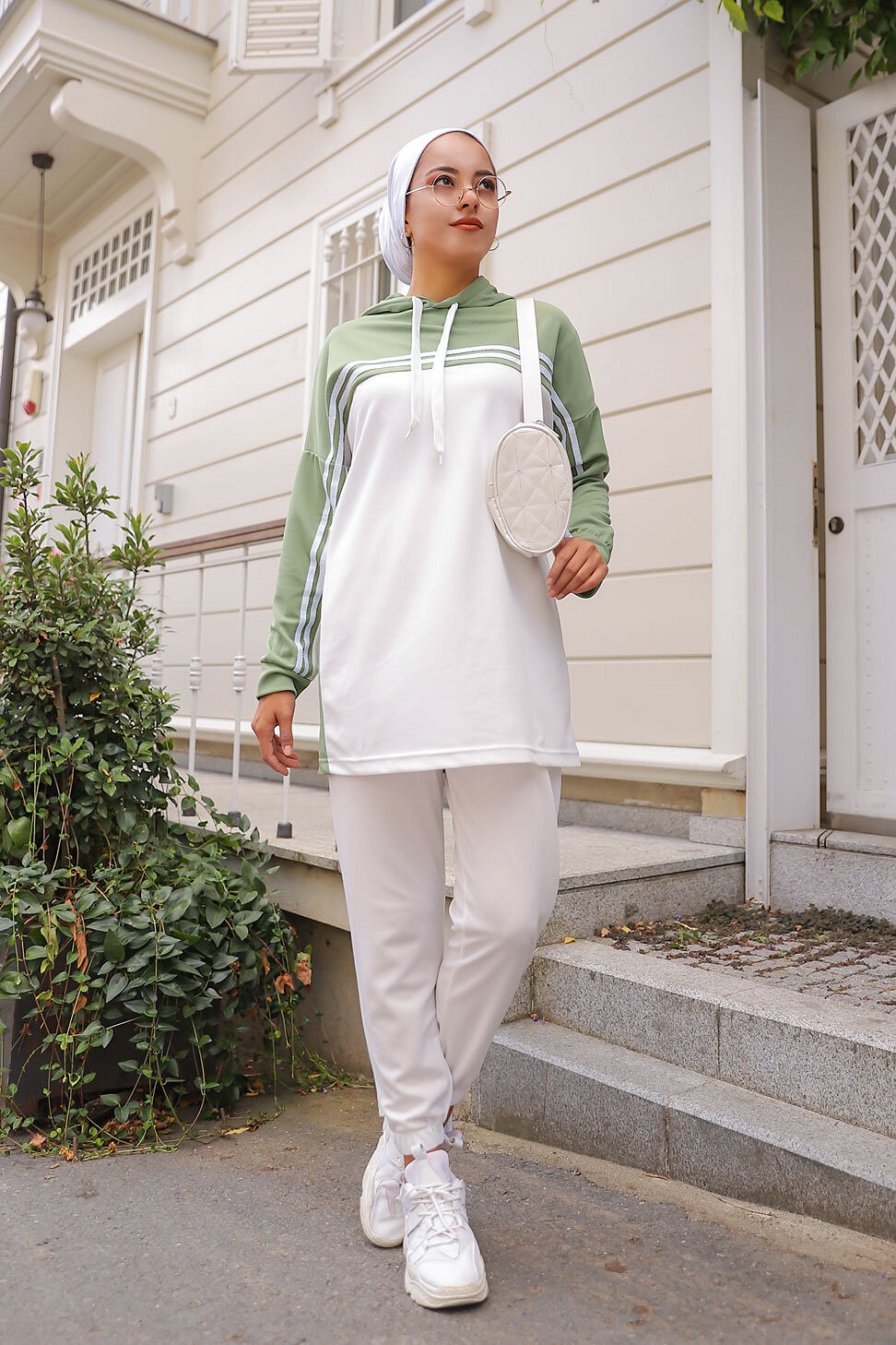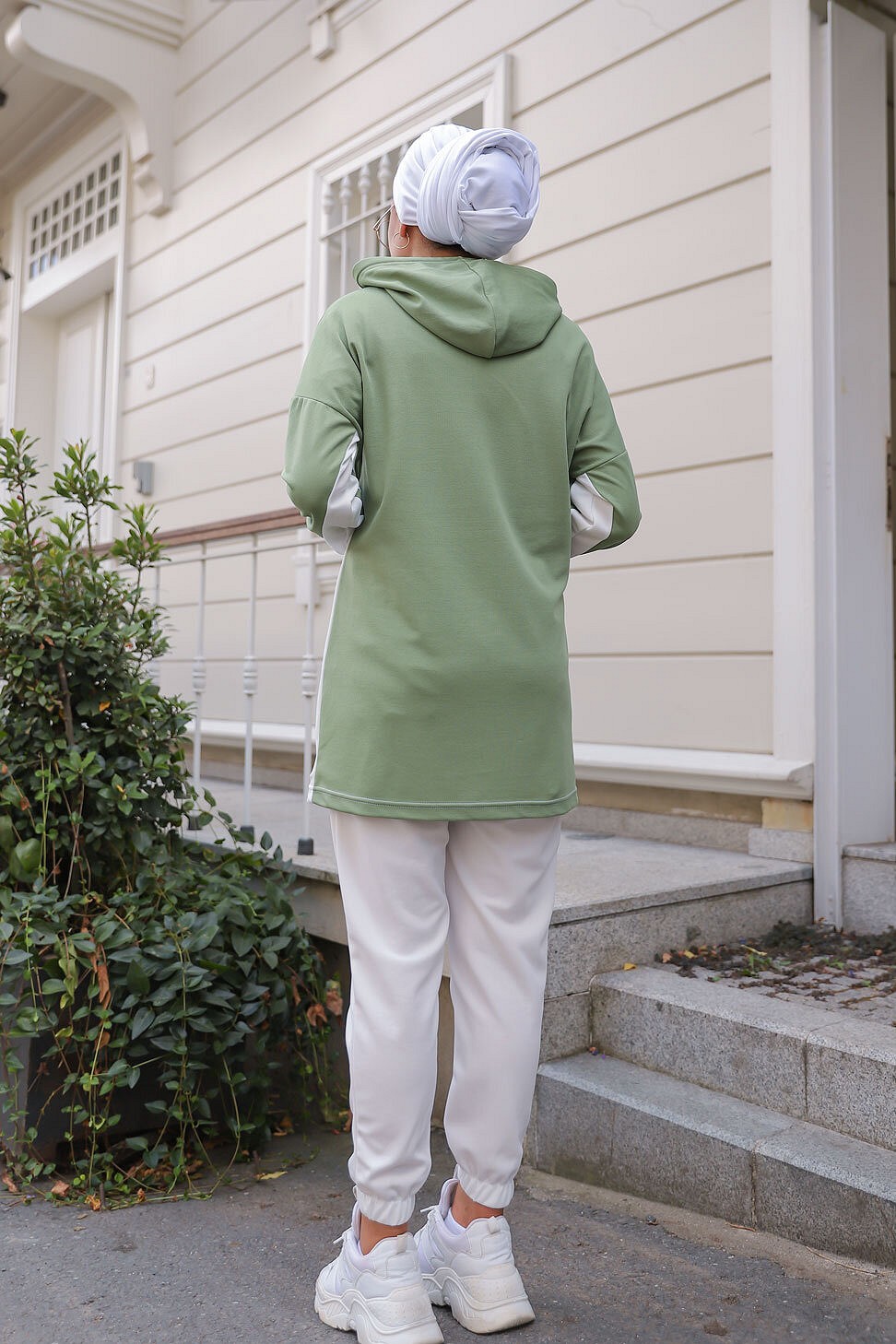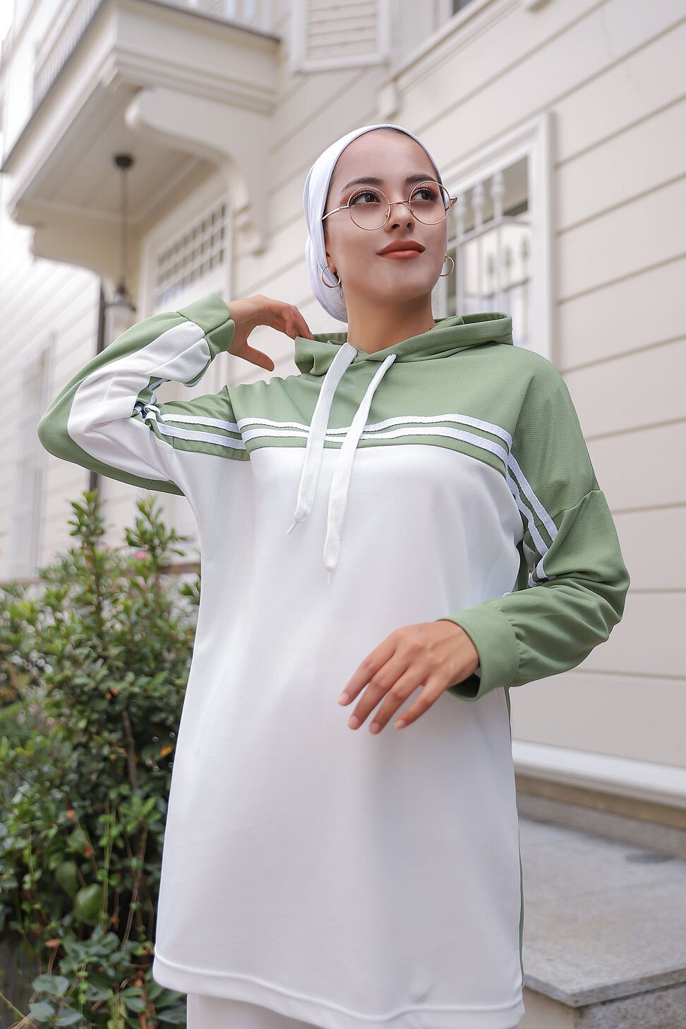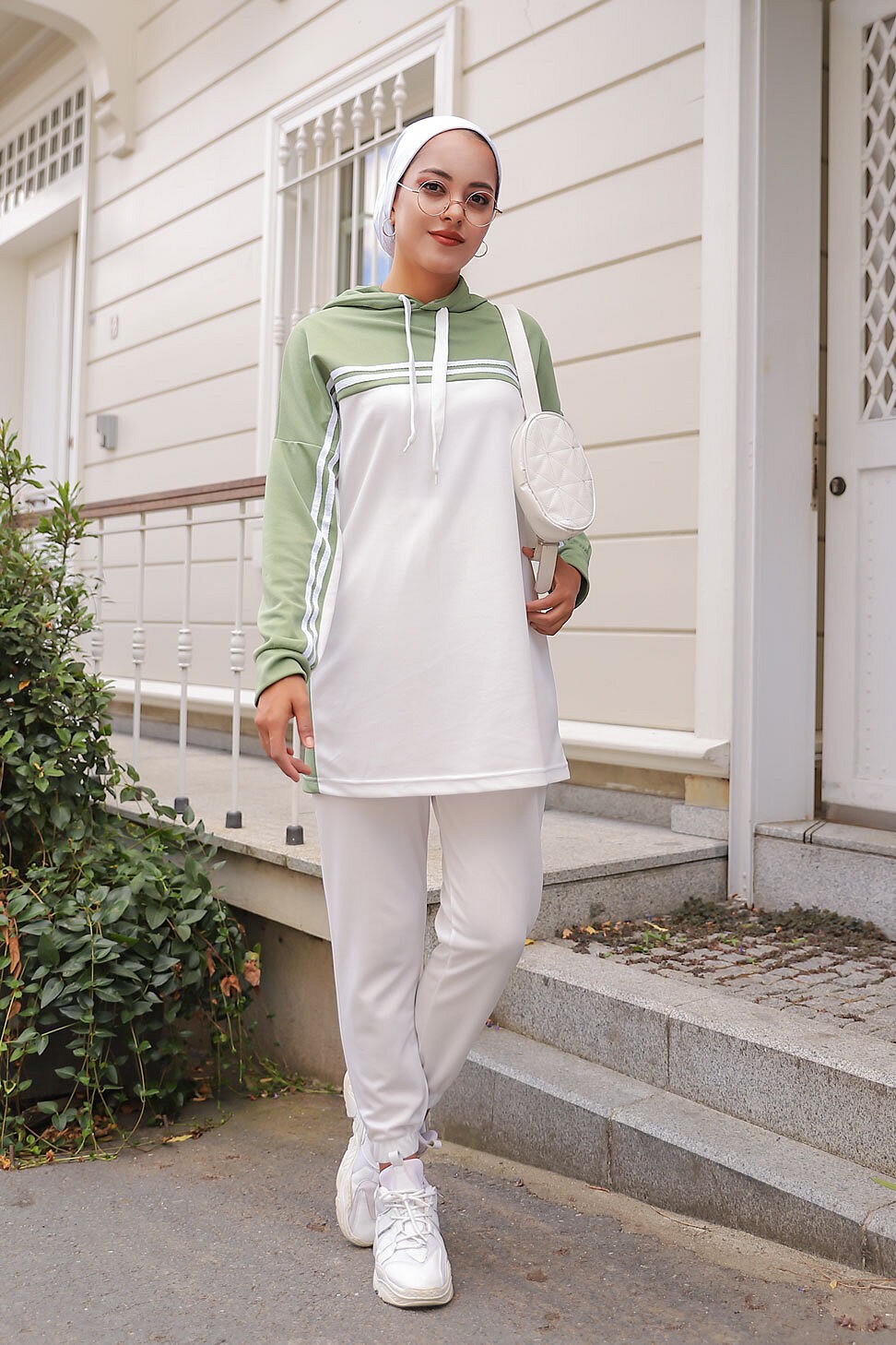 Survêtement femme (Ensemble deux pièces sweet à capuche et pantalon) - Couleur Blanc et Vert amande Vetement & Accessoire