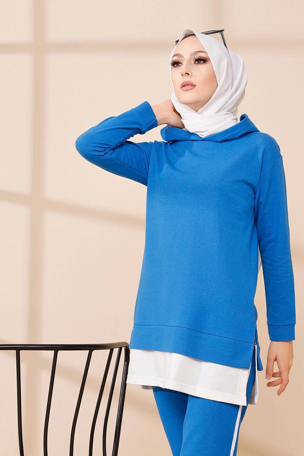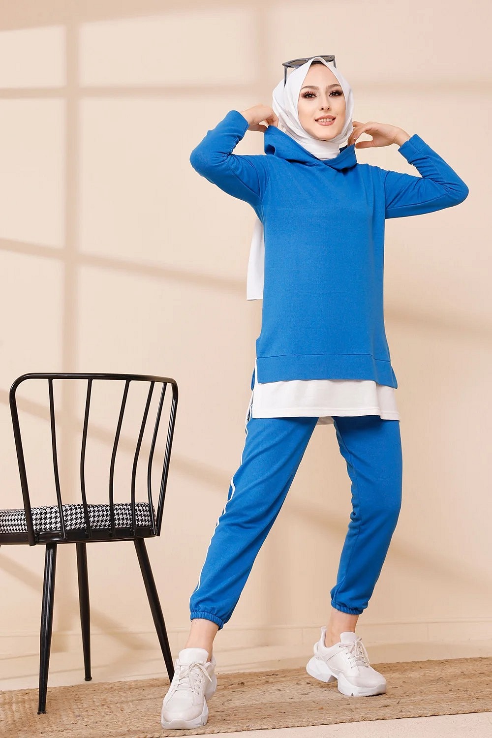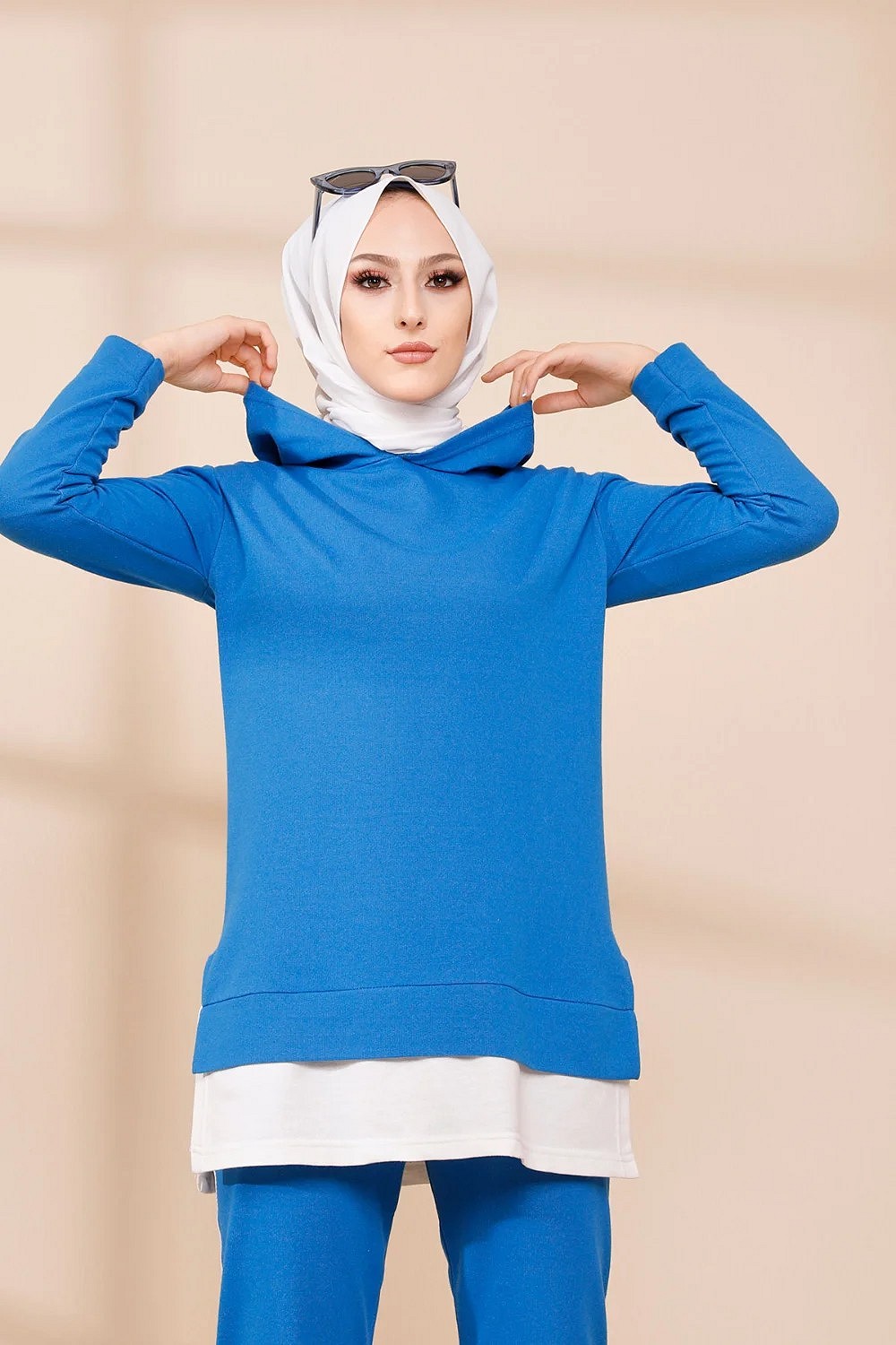 Ensemble décontracté pour femme : Tunique à capuche et Pantalon (Vêtement de sport pour musulmane) - Couleur beige - REF. 36228 (32.00 €)