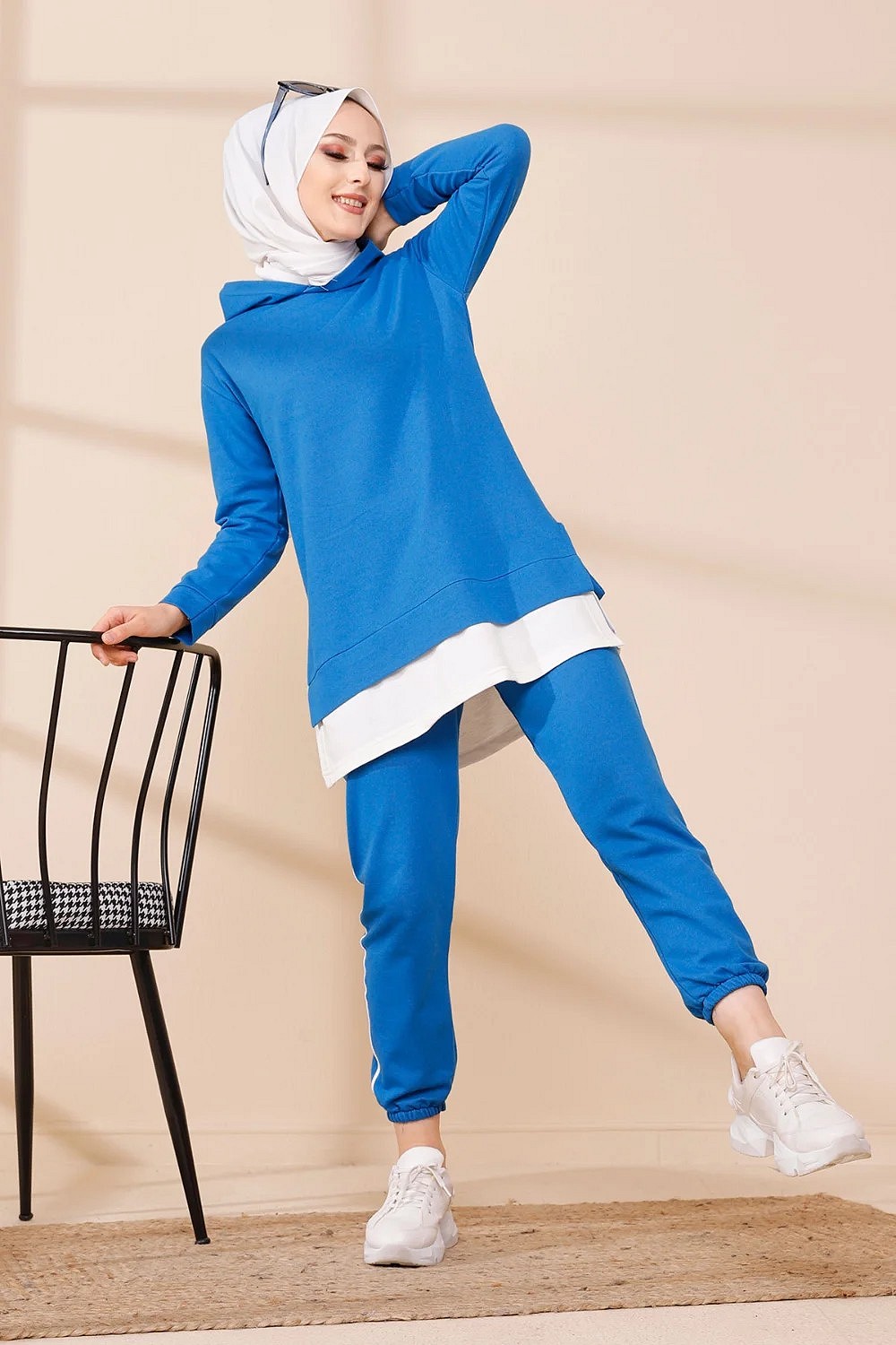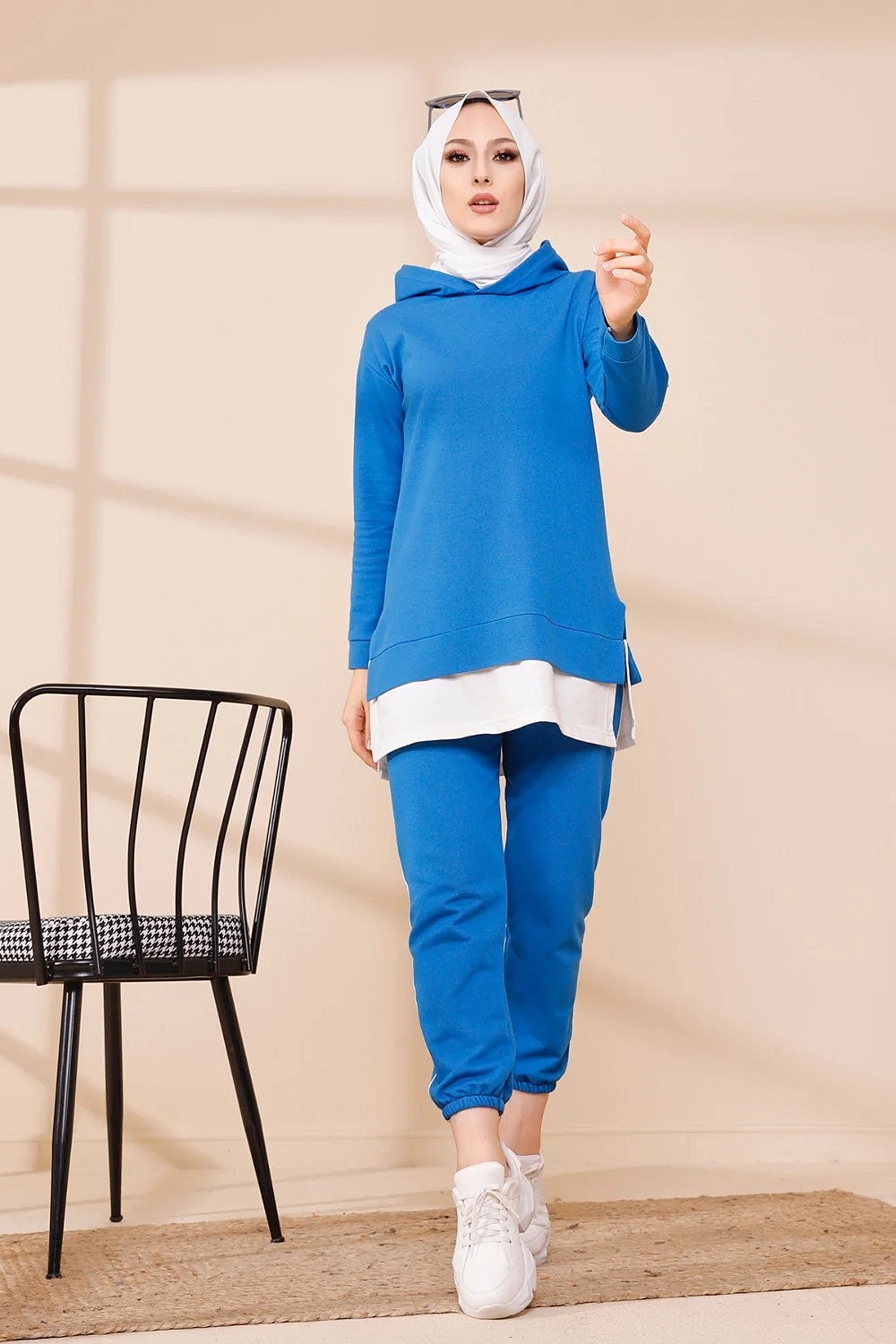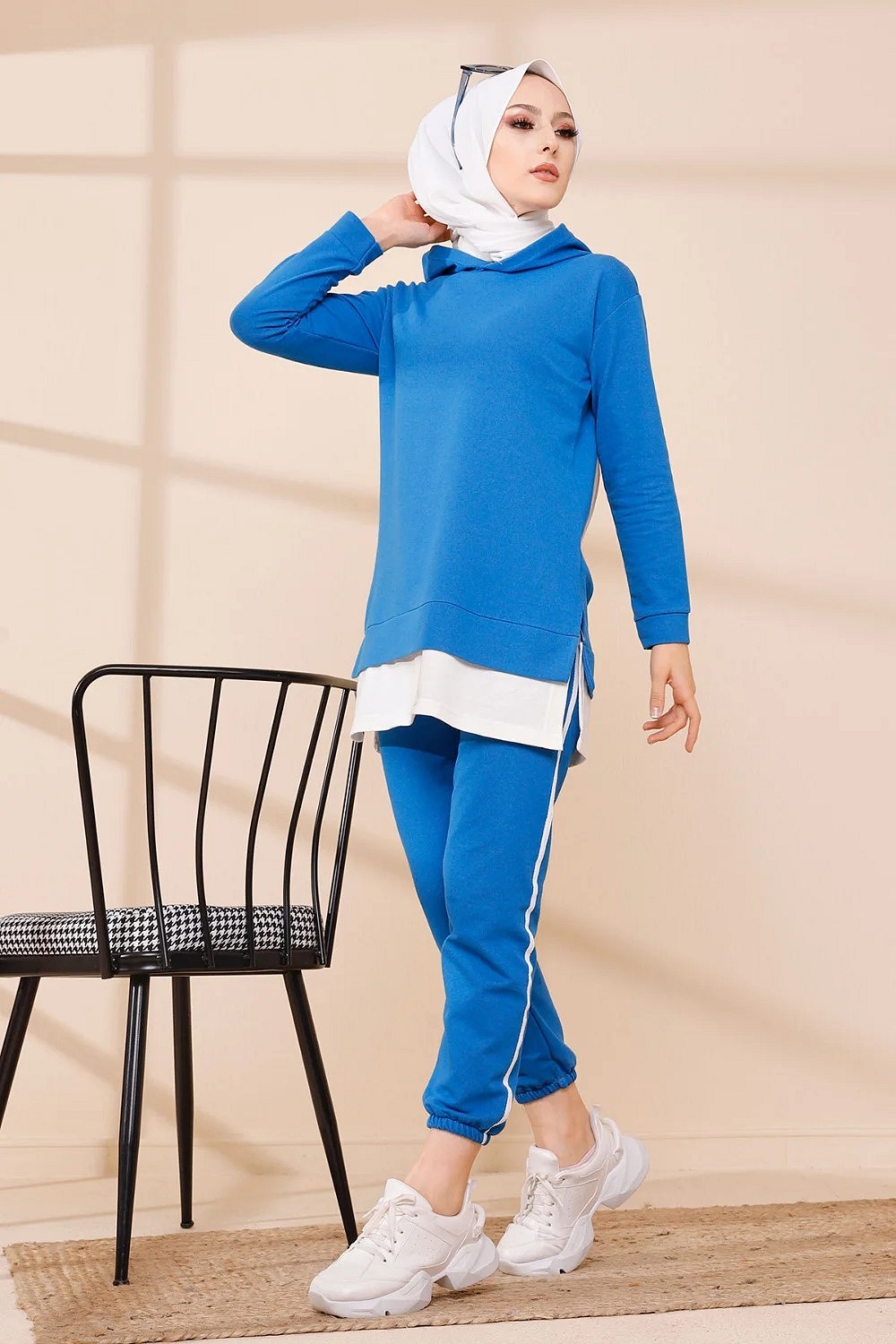 Ensemble décontracté pour femme : Tunique à capuche et Pantalon (Vêtement de sport pour musulmane) - Couleur beige - REF. 36228 (32.00 €)