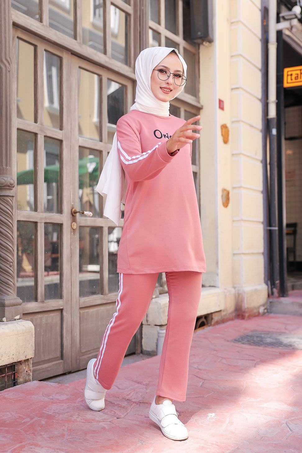 Survêtement "original" 2 pièces (Sweat et pantalon) - Hidjab Look Sport pour femme voilée - Couleur rose clair Vetement & Accessoire