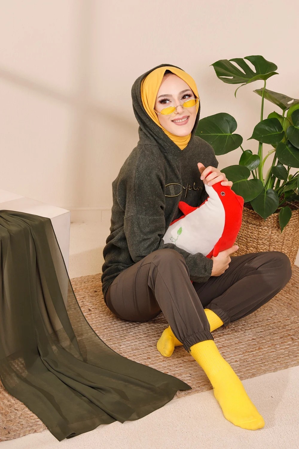 Veste moderne style décontracté avec fermeture zip (Vetement femme voilée) - Couleur kaki - REF. 32847 (24.90 €) - En Promotion à 19.00 €