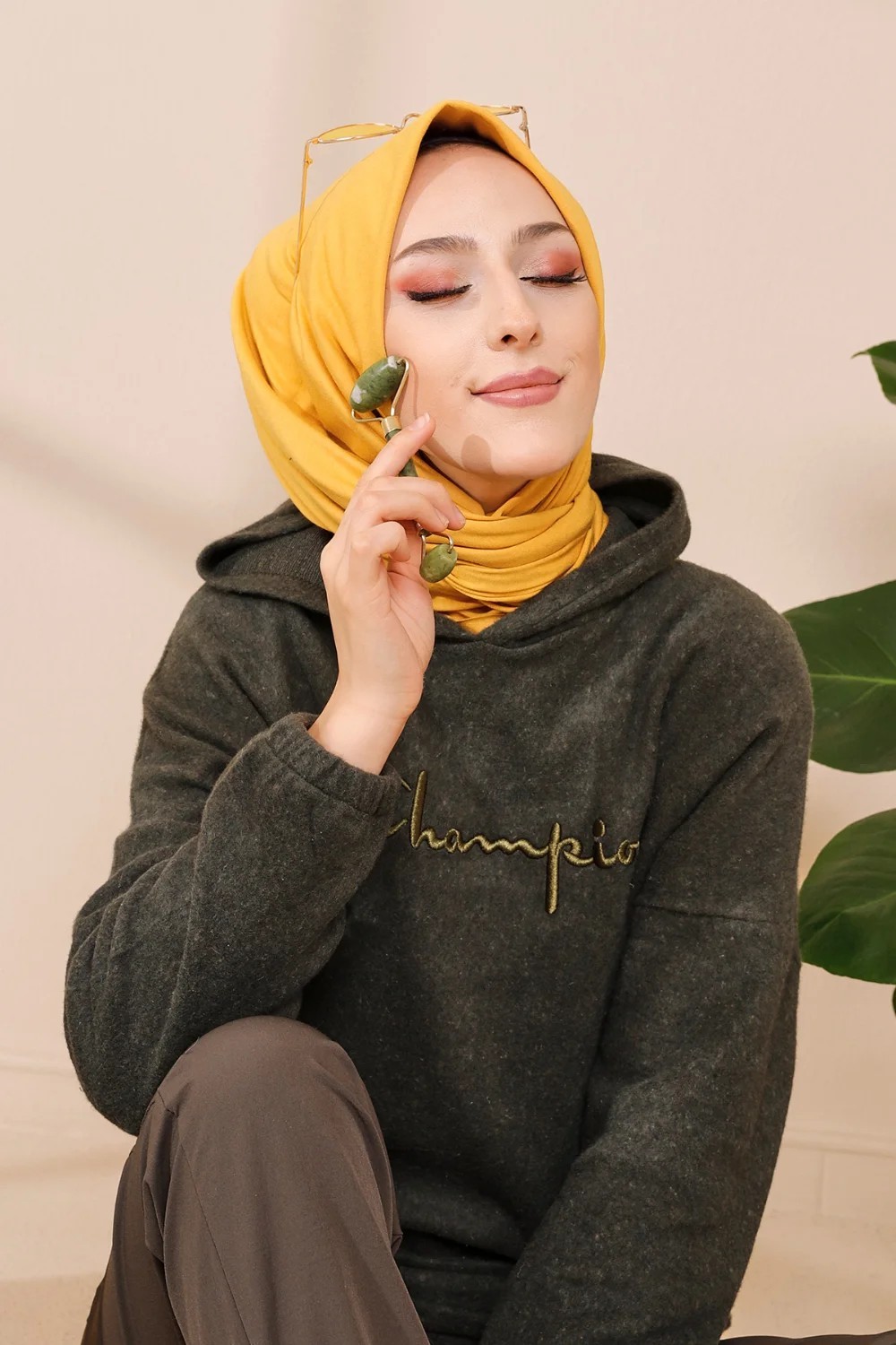 Tunique bicolore avec capuche pour femme (Tenue Hijab moderne et Sport) - Couleur noir et jaune moutarde - REF. 38287 (25.00 €) - En Promotion à 19.00 €