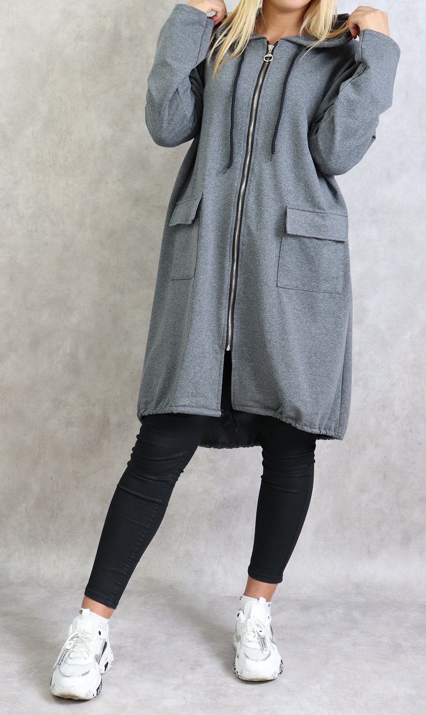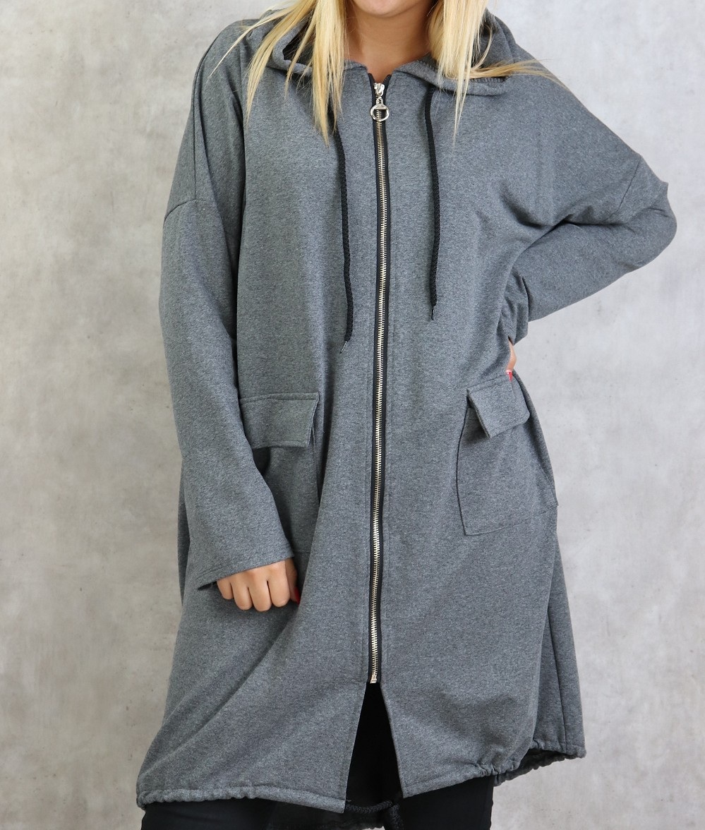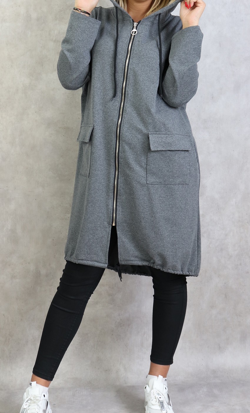 Sweat long zippé style sportswear pour femme - Couleur gris chiné Vetement & Accessoire
