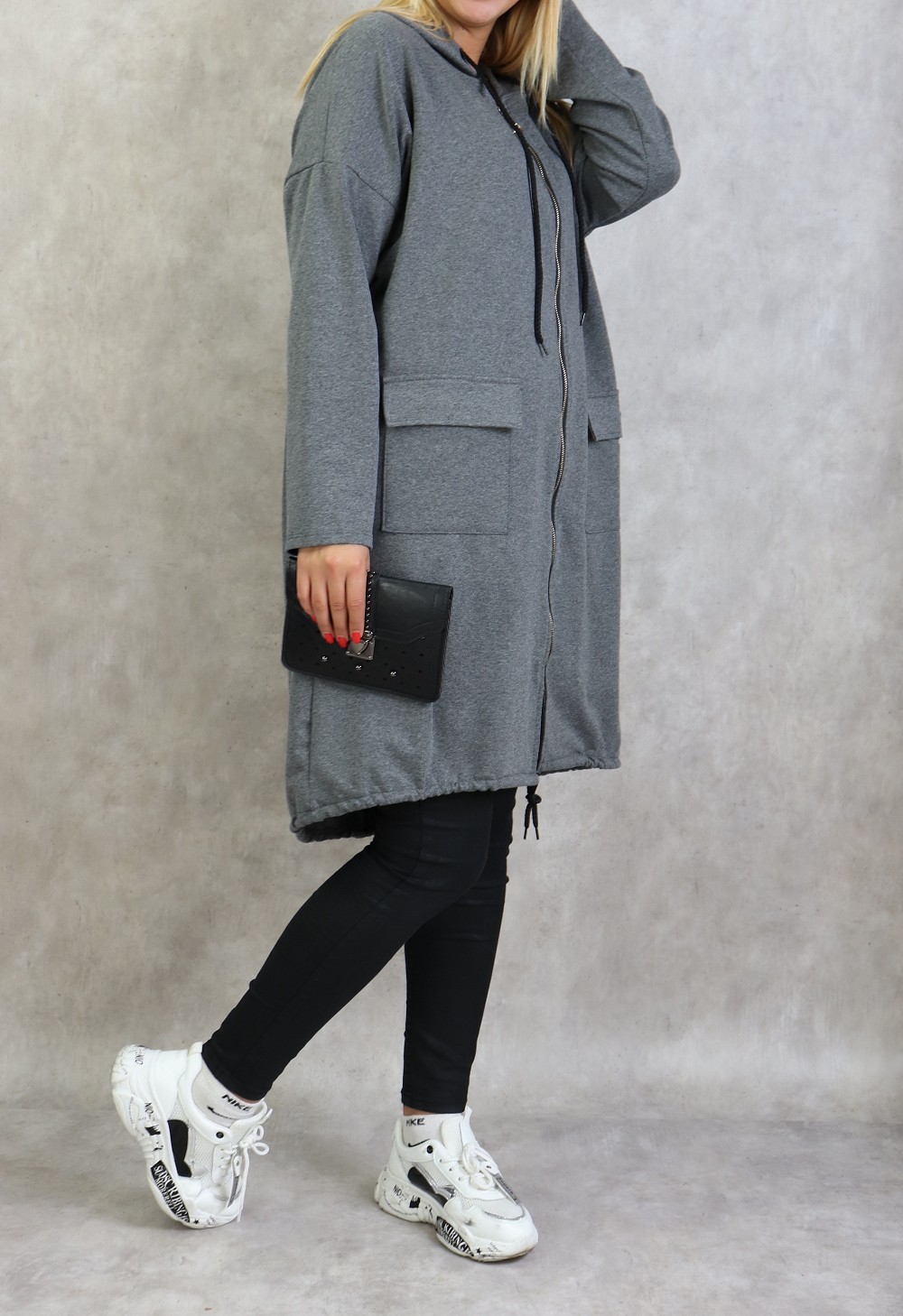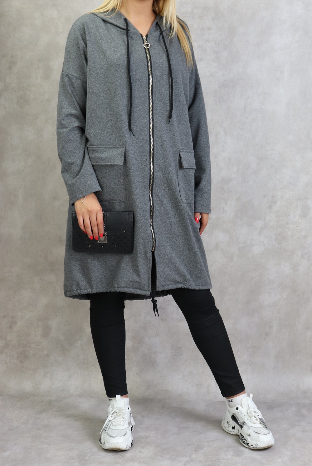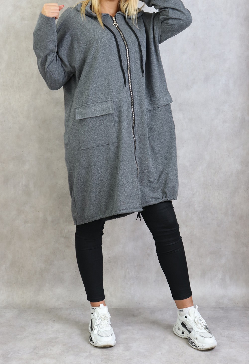 Sweat long zippé style sportswear pour femme - Couleur gris chiné Vetement & Accessoire