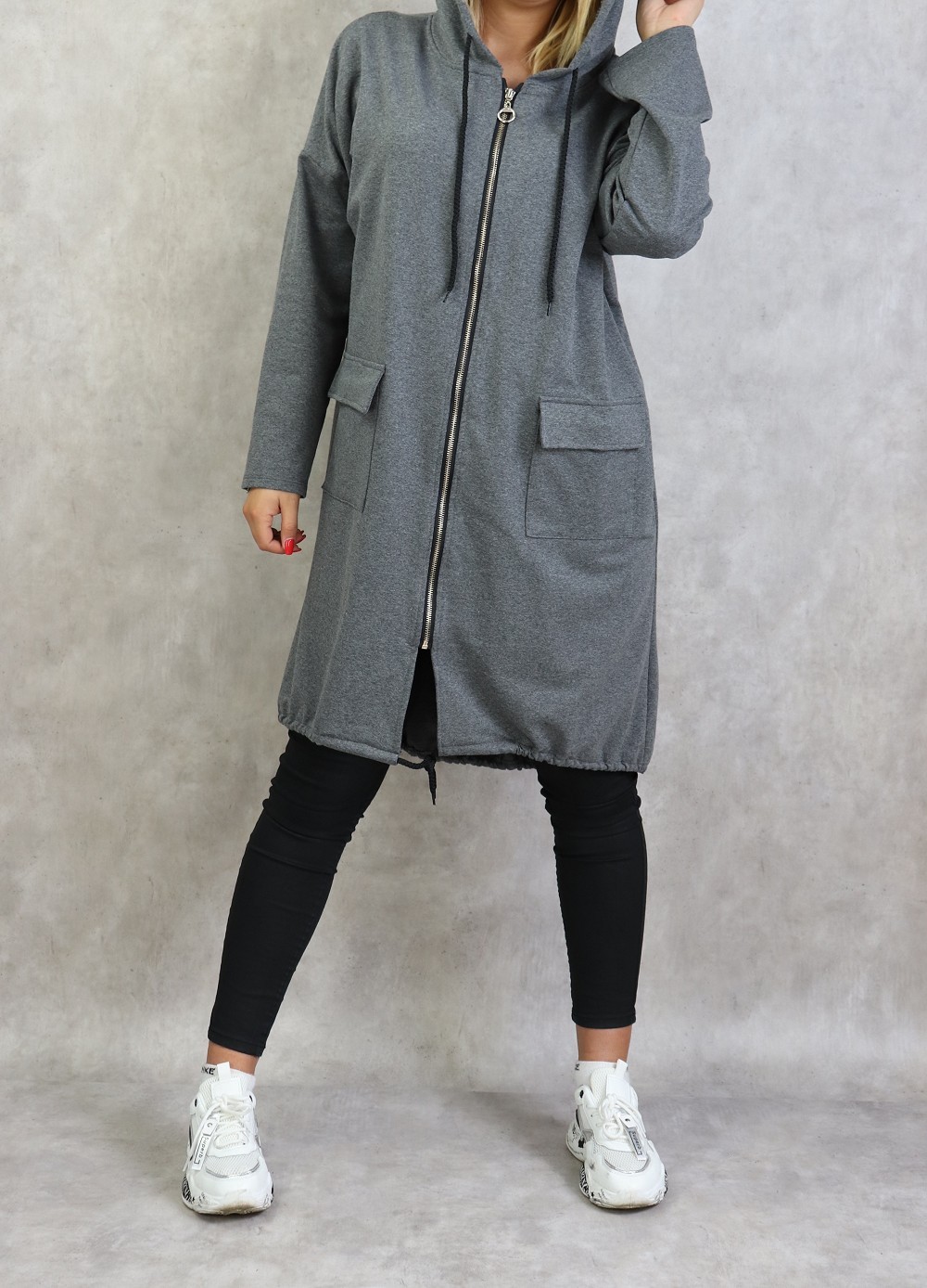 Sweat long zippe style sportswear pour femme - Couleur gris chine