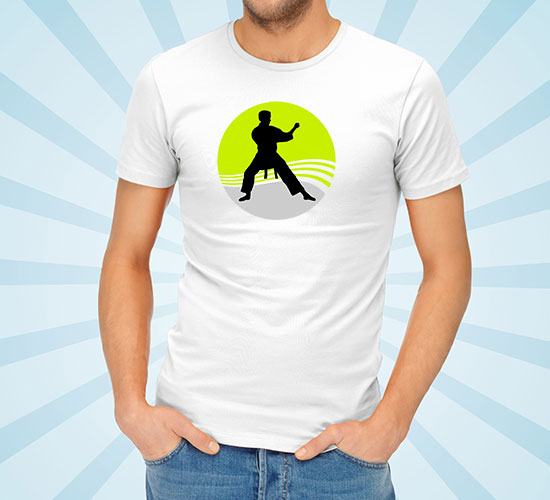 T-Shirt moderne avec illustration représentant un karatéka en position.