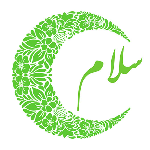 T-Shirt moderne avec illustration représentant un croissant et une calligraphie du mot "Salam" (سلام).