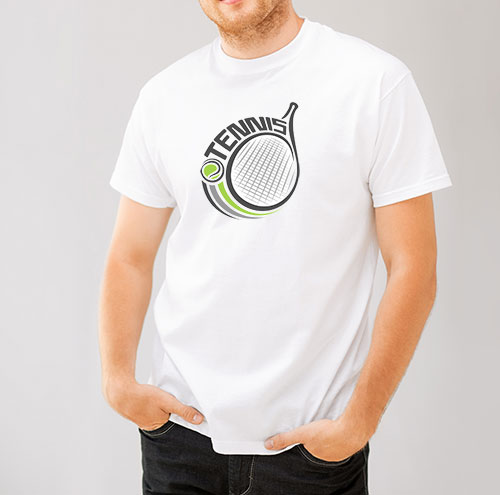 T-Shirt moderne personalisable avec en illustration un logo de tennis.
