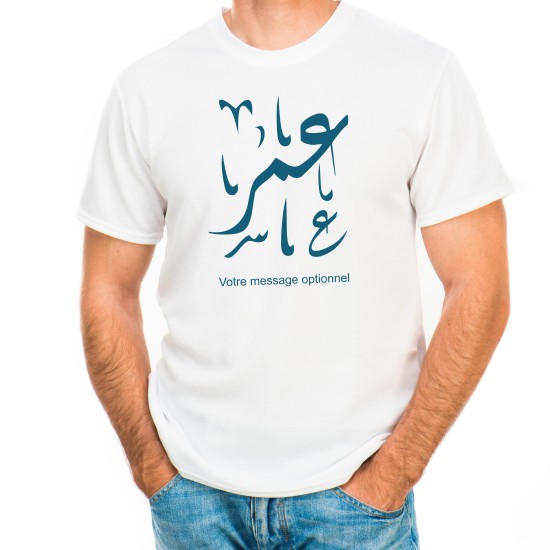 T-Shirt personnalise avec un prenom calligraphie en arabe et message optionnel (plusieurs couleurs disponibles)