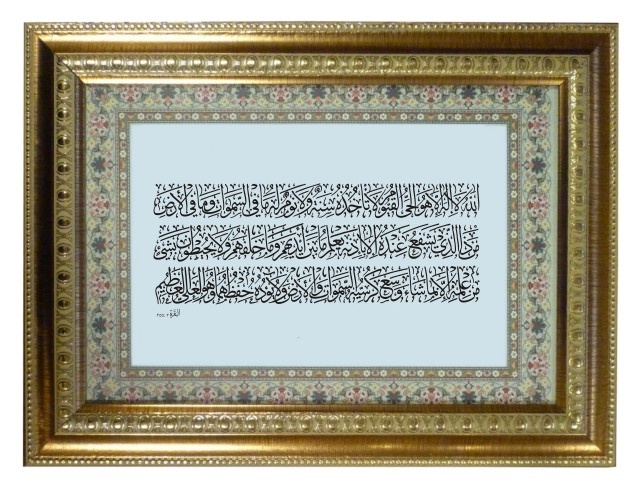 Tableau avec calligraphie de Ayatou l-Koursî (Le Verset du Trône) couleur bleue - Cadre en bois avec verre - REF. 22519 (14.90 €) |