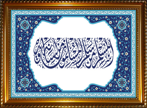 Tableau avec calligraphie en style Diwani du hadith : "المسلم من سلم المسلمون من لسانه ويده".