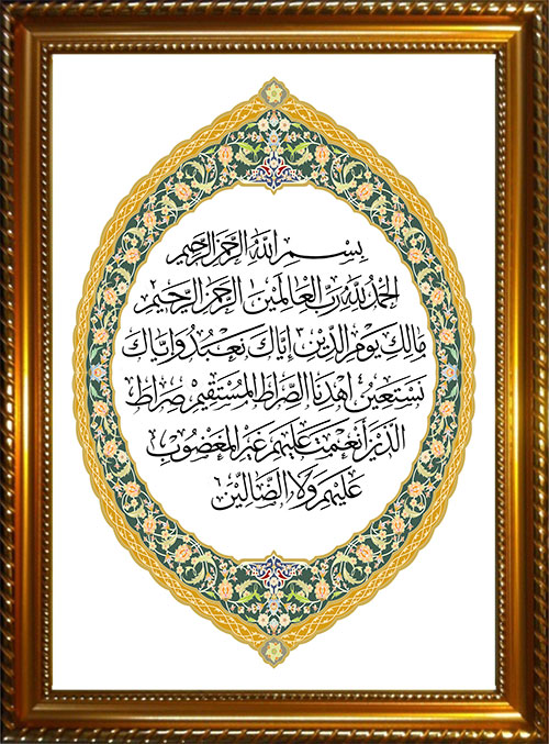 Tableau avec calligraphie de Sourate N° 1 Al-Fâtiha.