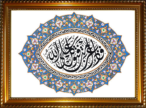 Tableau avec calligraphie de la Sourate N3 Al-'Imran - Verset 159 (tawakkul 'alAllah) - Cadre en bois