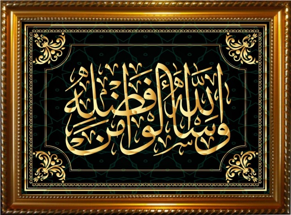 Tableau avec calligraphie du verset coranique "Demandez a Allah de Sa grace" -