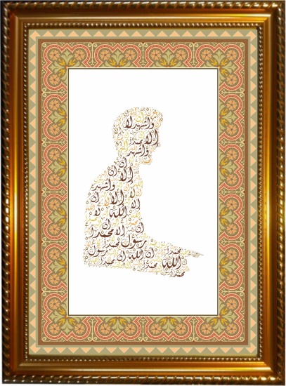 Tableau avec calligraphies de l'attestation de foi sous forme d'une personne qui fait la prière - REF. 28700 (14.90 €)