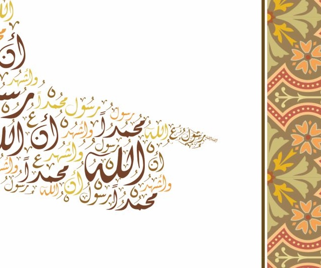 Tableau avec des dizaines de calligraphies de l'attestation de foi musulmane qui ensemble prennent la forme d'une personne assise entrain de faire sa prière...
