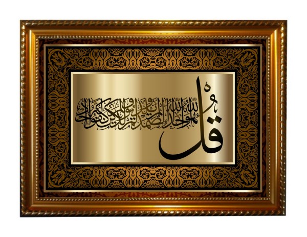 Tableau avec la calligraphie de Sourate Al-Ikhlâss (Le Monothéisme Pur) - Cadre en bois avec verre - REF. 34121 (14.90 €)