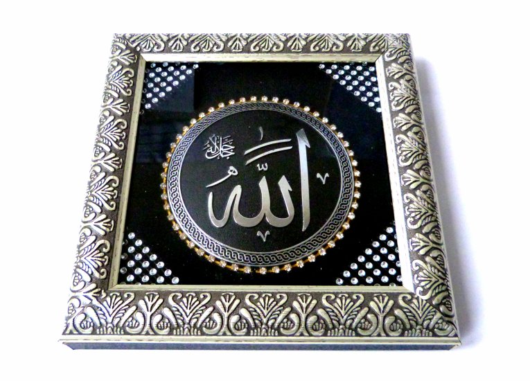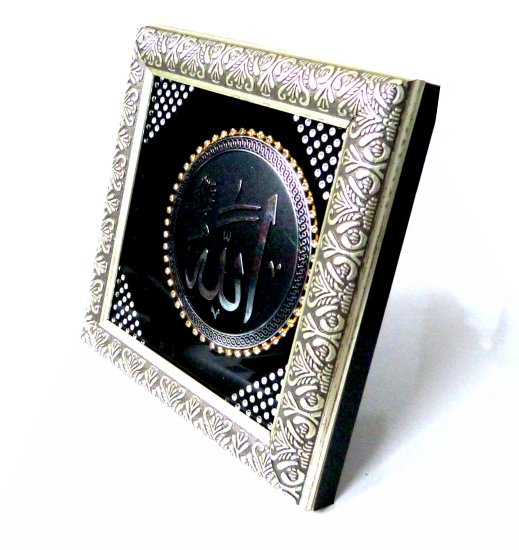 Très beau tableau en bois argenté avec calligraphie "Allah" décoré de diamants.