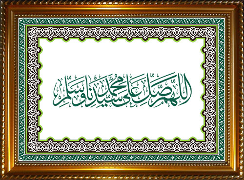 Vous recevrez un tableau avec encadrement bois décoré et doré contenant la calligraphie de Salât 'ala n-Nabî ainsi qu'un texte optionnel de votre choix (personnalisable) en français ou en arabe. Ce texte sera placé en dessous de la calligraphie.