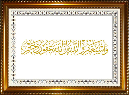 Tableau personnalisable avec calligraphie du verset "Et demandez pardon à Allah. Car Allah est Pardonneur et Miséricordieux" - REF. 22518 (19.00 €)