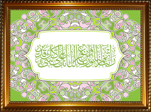 Tableau personnalisable avec calligraphie du verset "qui fait sortir le vivant du mort et fait sortir le mort du vivant" - REF. 22491 (19.00 €)