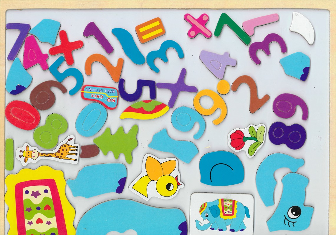 Tableau-puzzle en bois educatif : Les chiffres et les operations mathematiques + Reconstituer un elephant