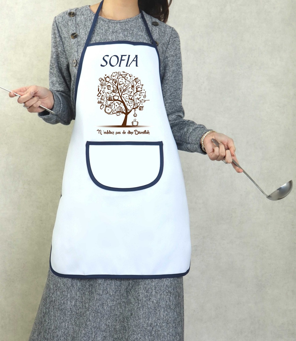 Un tablier personnalisé selon votre goût vous protégera de toute sorte de tâches. Le tablier est lessivable en machine à 40° ; les couleurs ne déteignent pas avec le temps.