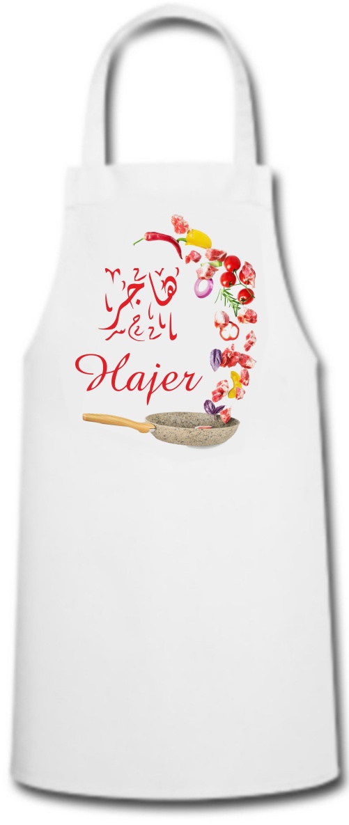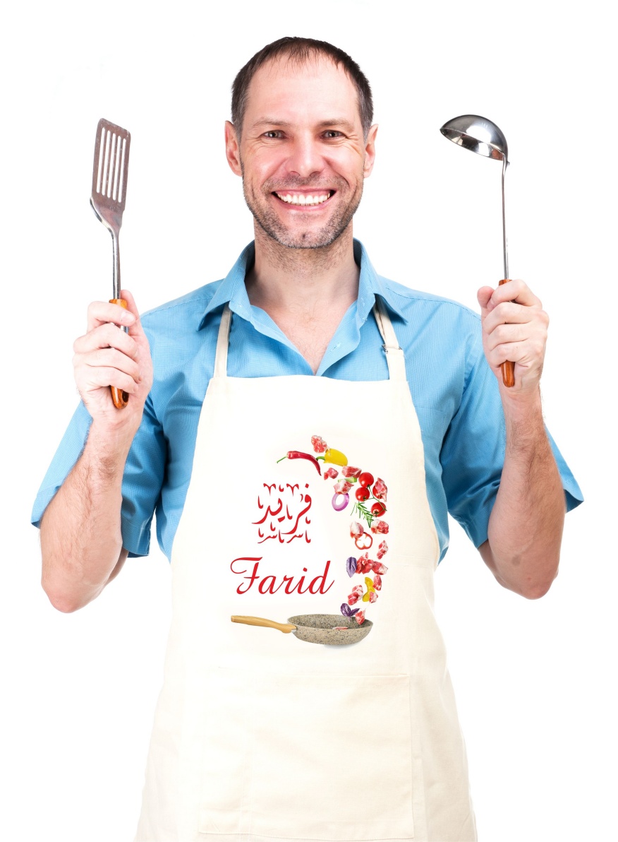 Recevez ce joli tablier de cuisine (mixte) avec inscription de votre choix (prénom, message, etc.) en français et/ou en arabe et une jolie illustration.