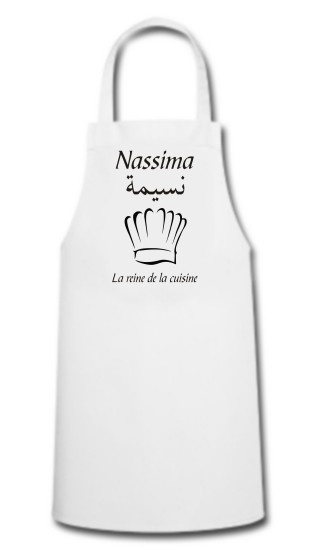 Recevez ce joli tablier de cuisine avec inscription de votre choix (prénom, message, etc.) et illustration du chapeau du chef (Toque de Chef).