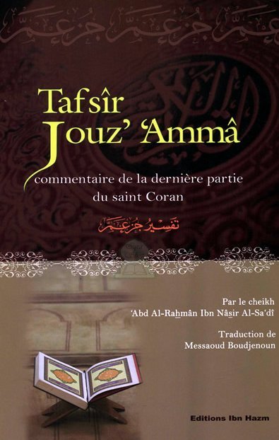 Tafsîr Jouz' `Ammâ (commentaire de la dernière partie du Saint Coran) par 'Abd Al-Rahmân Ibn Nâsir Al-Sa'dî, traduit par Messaoud Boudjenoun.
