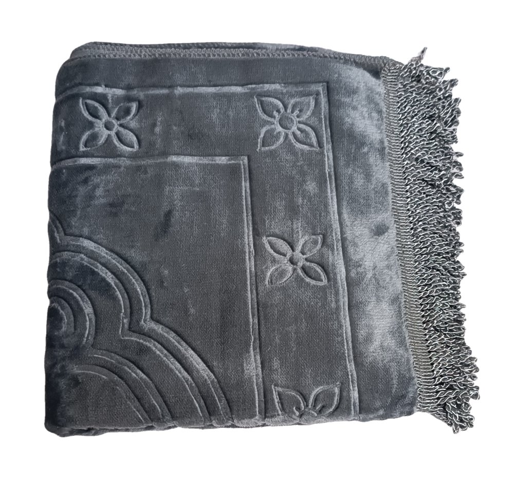 Tapis de priere adulte ultra-doux - Couleur gris (argente) unie avec motifs