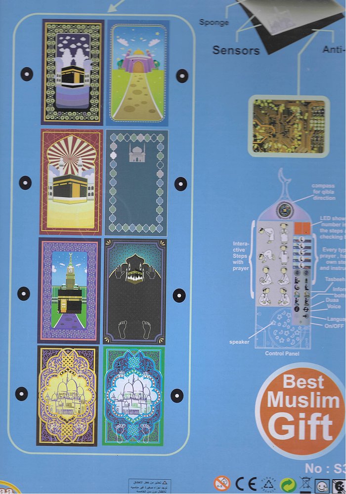 Ce tapis interactif est un outil pédagogique pour l'apprentissage précis de la prière tant au niveau des gestes que des paroles. Ce tapis interactif et pédagogique permet aux enfants comme aux adultes qui débutent la pratique de la prière, d’en faciliter l'apprentissage de façon autonome.