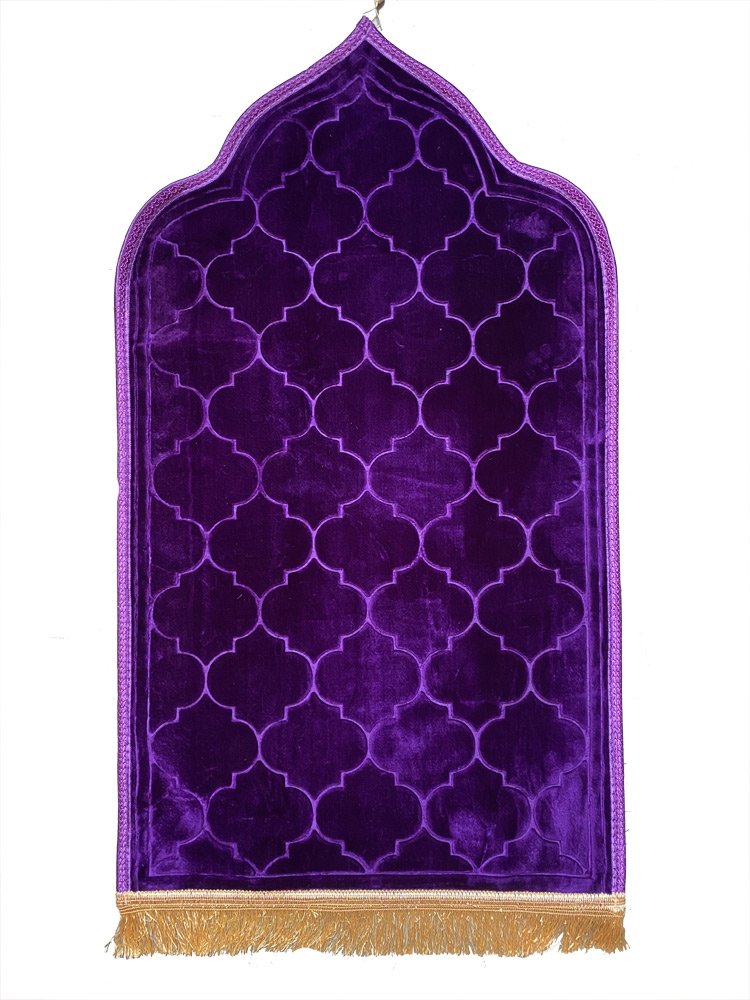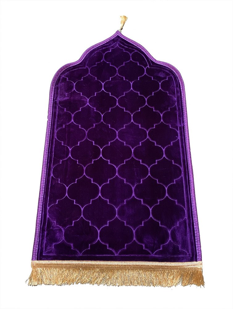 Tapis de priere original en forme de Mihrab avec parties dorees (Sajjada adulte Design Mehrab / Mosquee) - Couleur violet