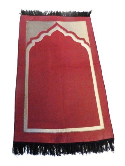 Grand tapis de prière 1 place rembourré pour plus de confort. Couleur unie bordeaux et partie dorée pour indiquer le sens du tapis pour positionner les pieds et la tête du bon côté.