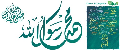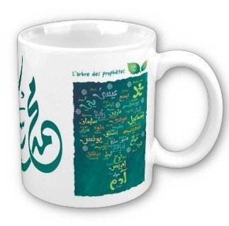 Tasse decorative mug : L'arbre des prophetes - avec calligraphie "Mohammed Messager d'Allah (SAW)"