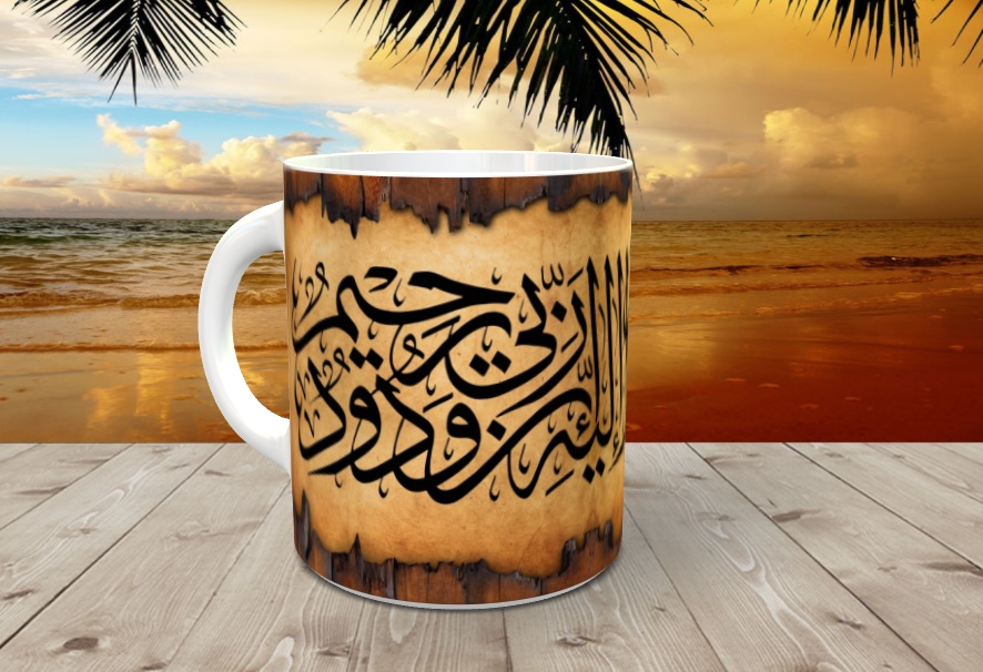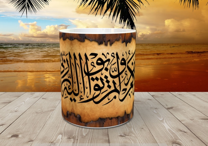 Tasse decorative mug avec la calligraphie de Sourate Houd "S11-V90" Repentir, Pardon et Amour Divin