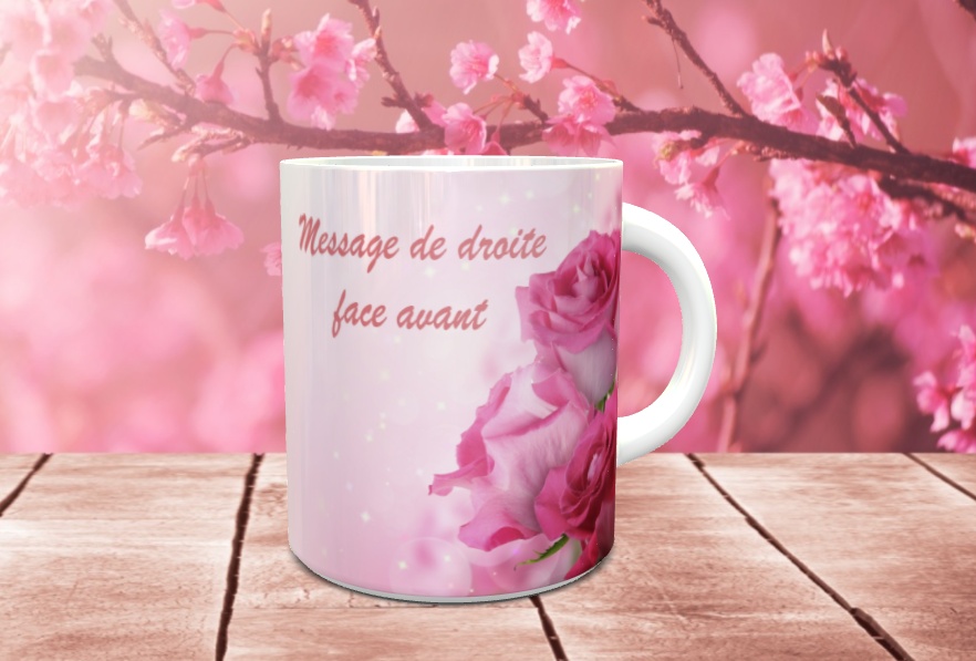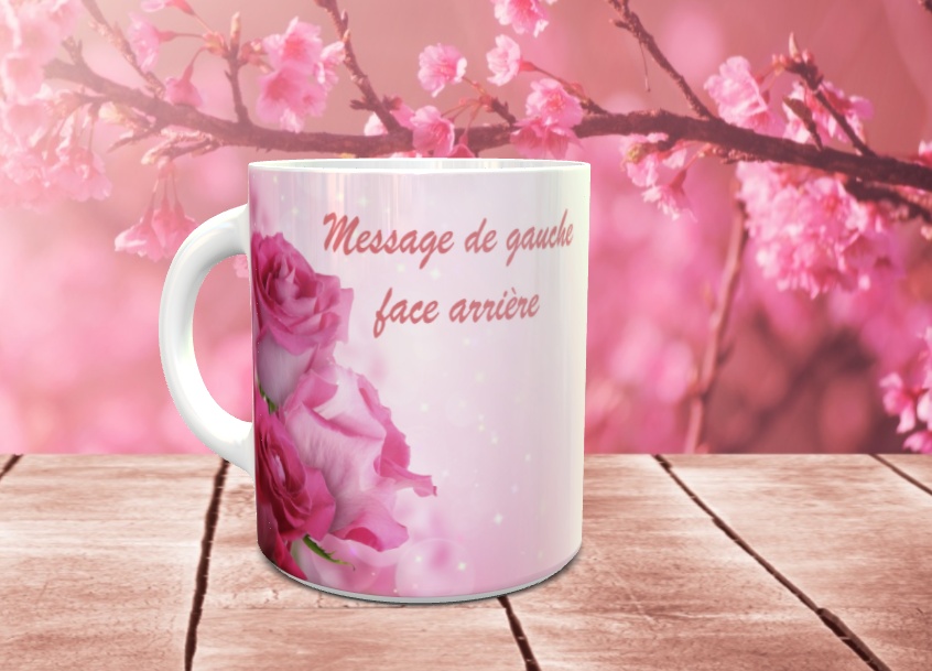 Tasse rose personnalisable avec messages ou prenoms de votre choix (Mug Fleurs Roses)
