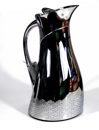 Très beau thermos métallique en inox argenté. Capacité 1L. Avec bouton simple pour verser ou stopper. Thermos de très bonne qualité pour garder longtemps à la même température les boissons chaudes ou froides.