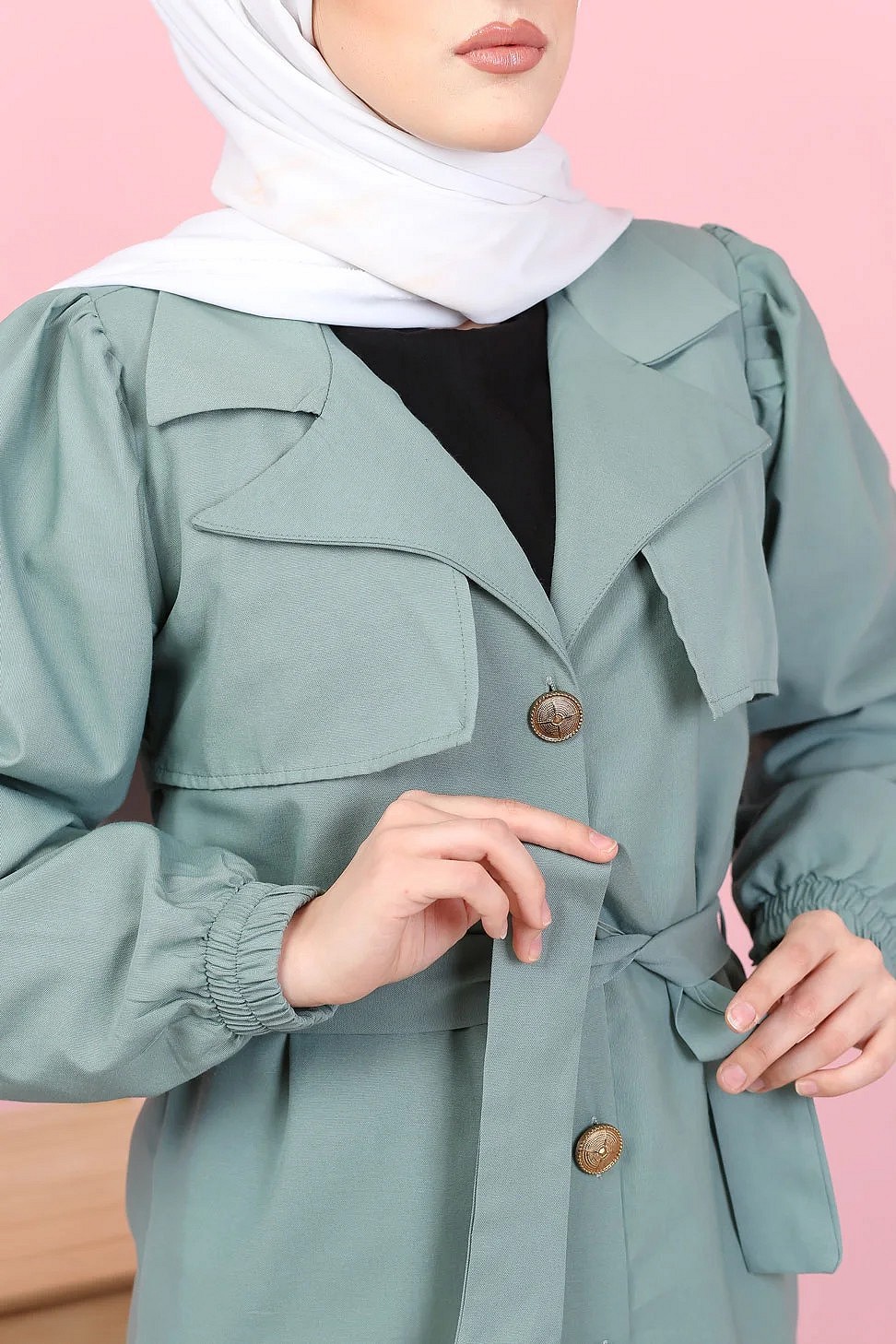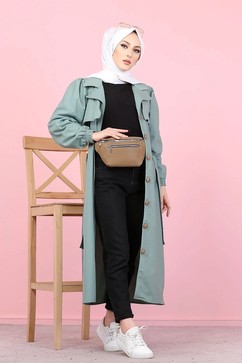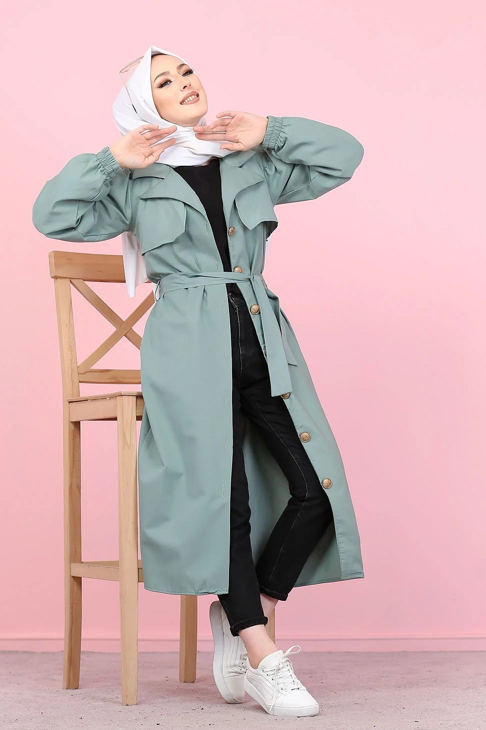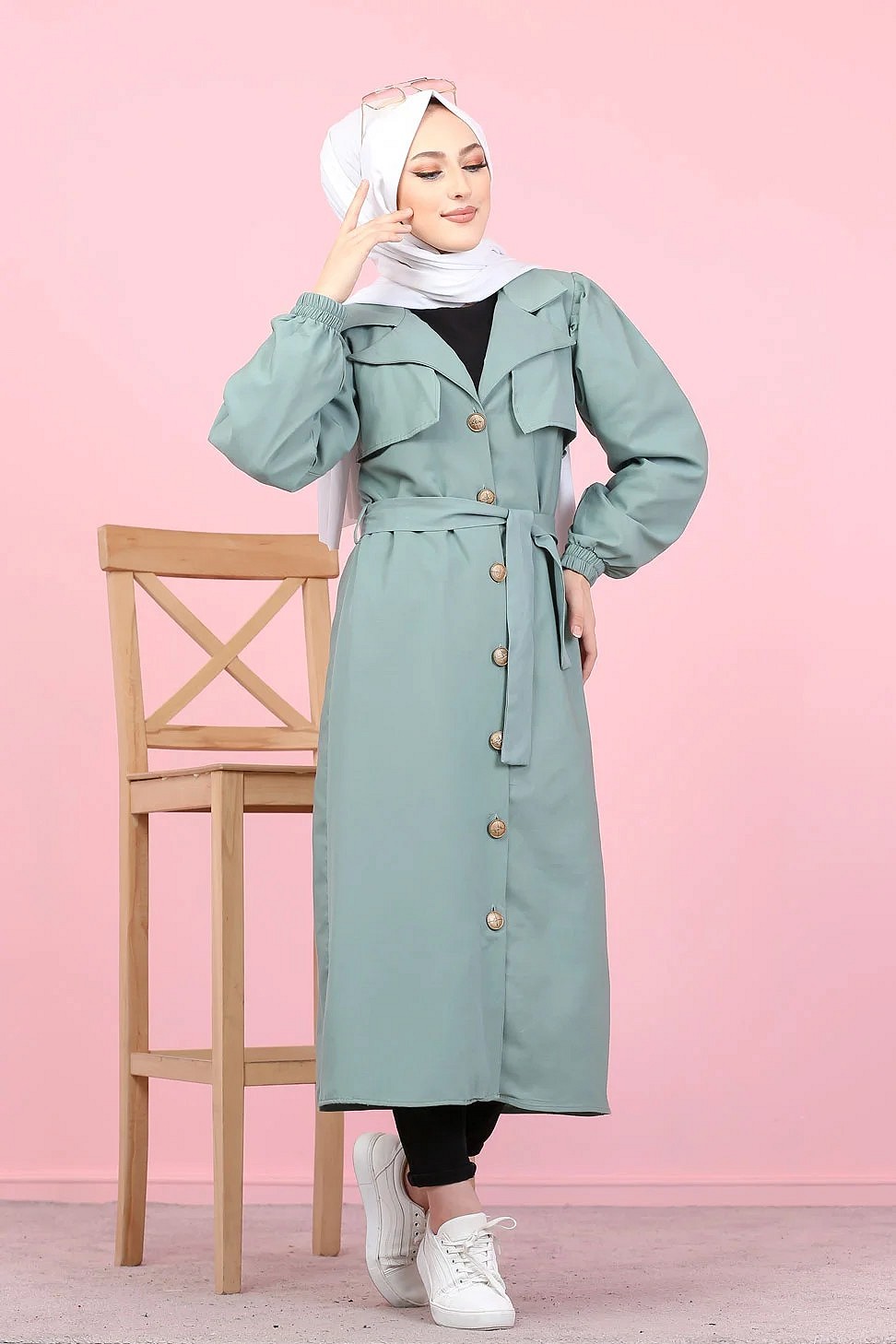 Trench-Coat Long pour femme (Boutique en ligne de Mode musulmane) - Couleur Menthe Vetement & Accessoire