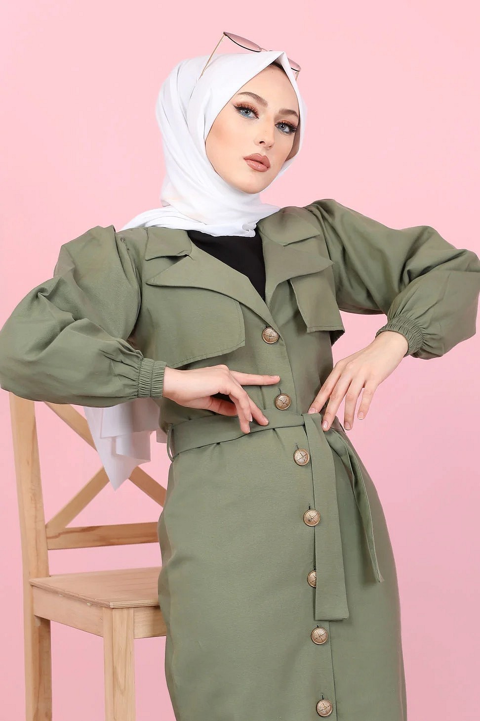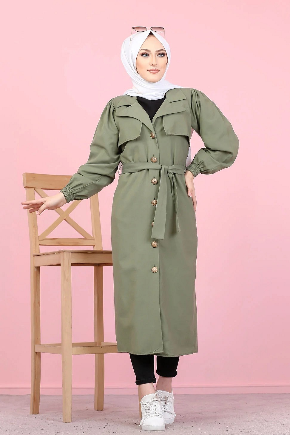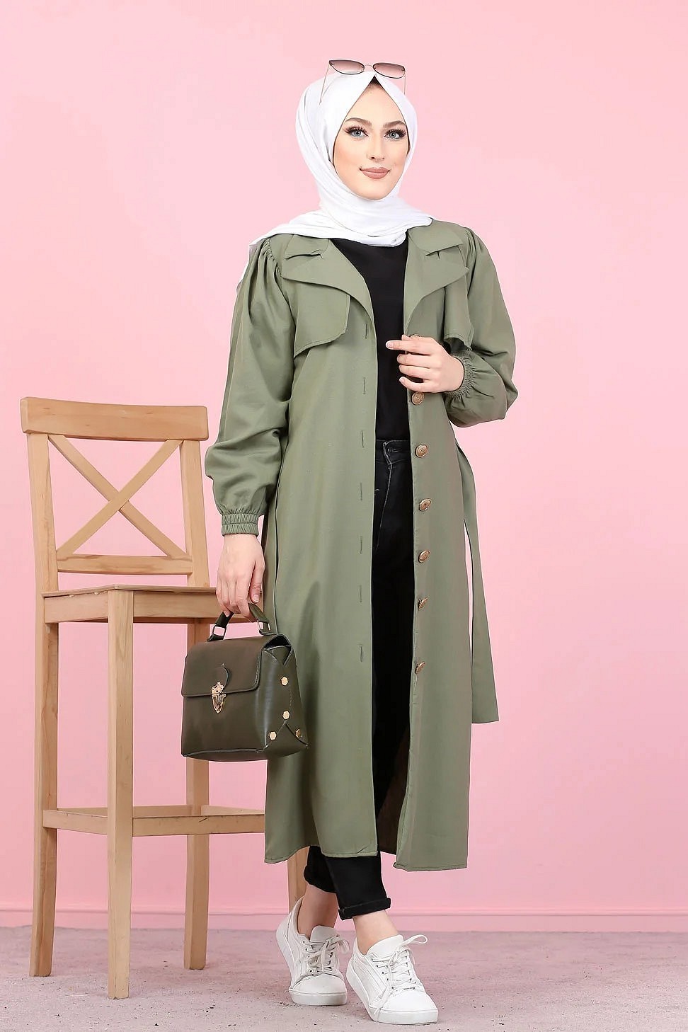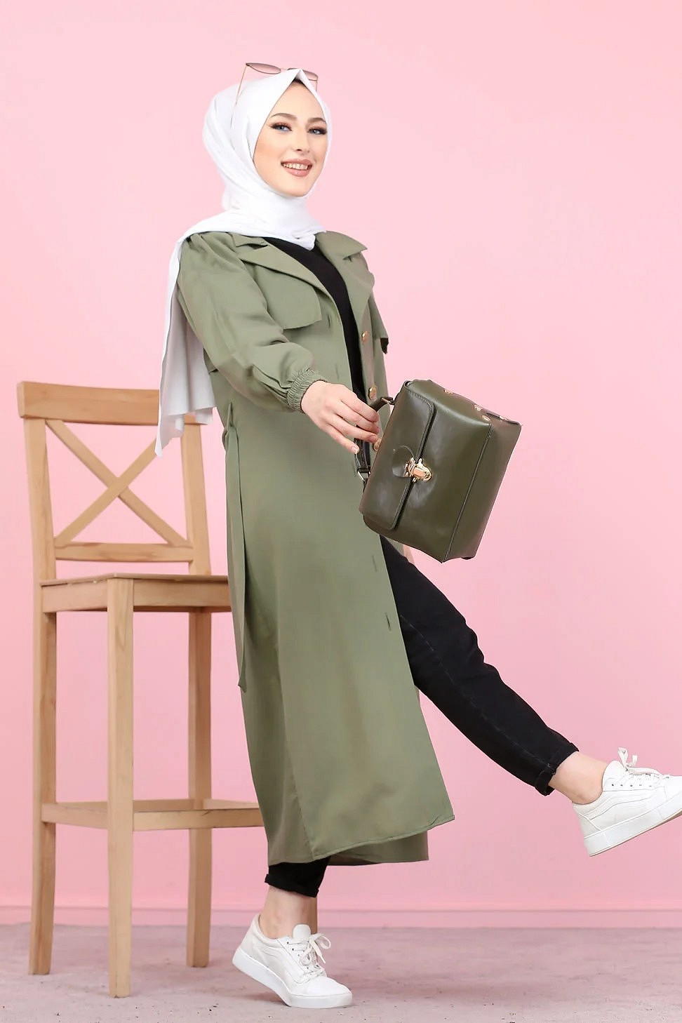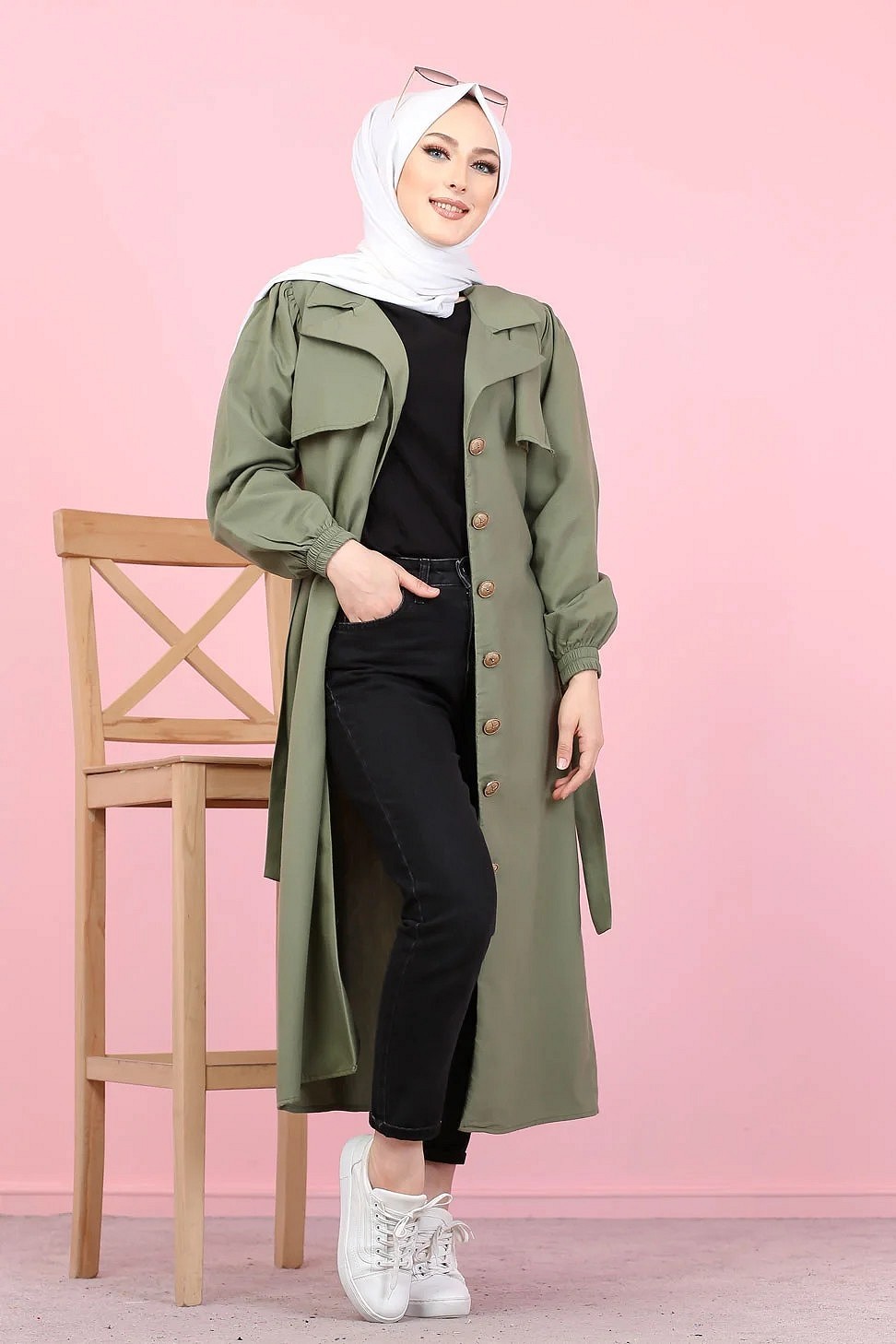 Trench Coat Long pour femme (Vetement pour femmes voilées) - Couleur Kaki Vetement & Accessoire