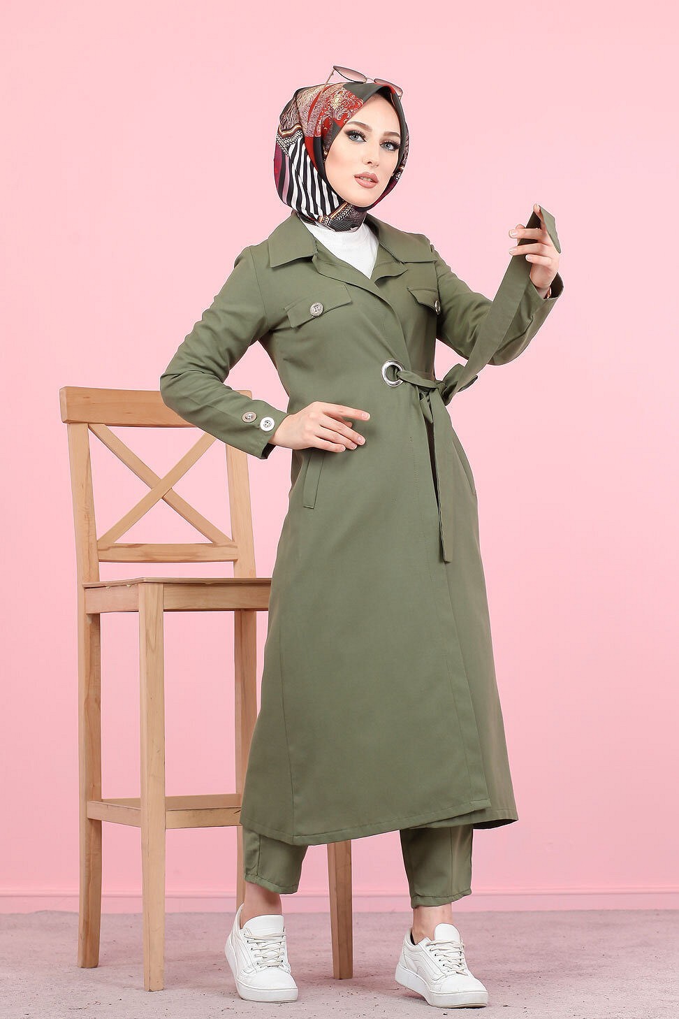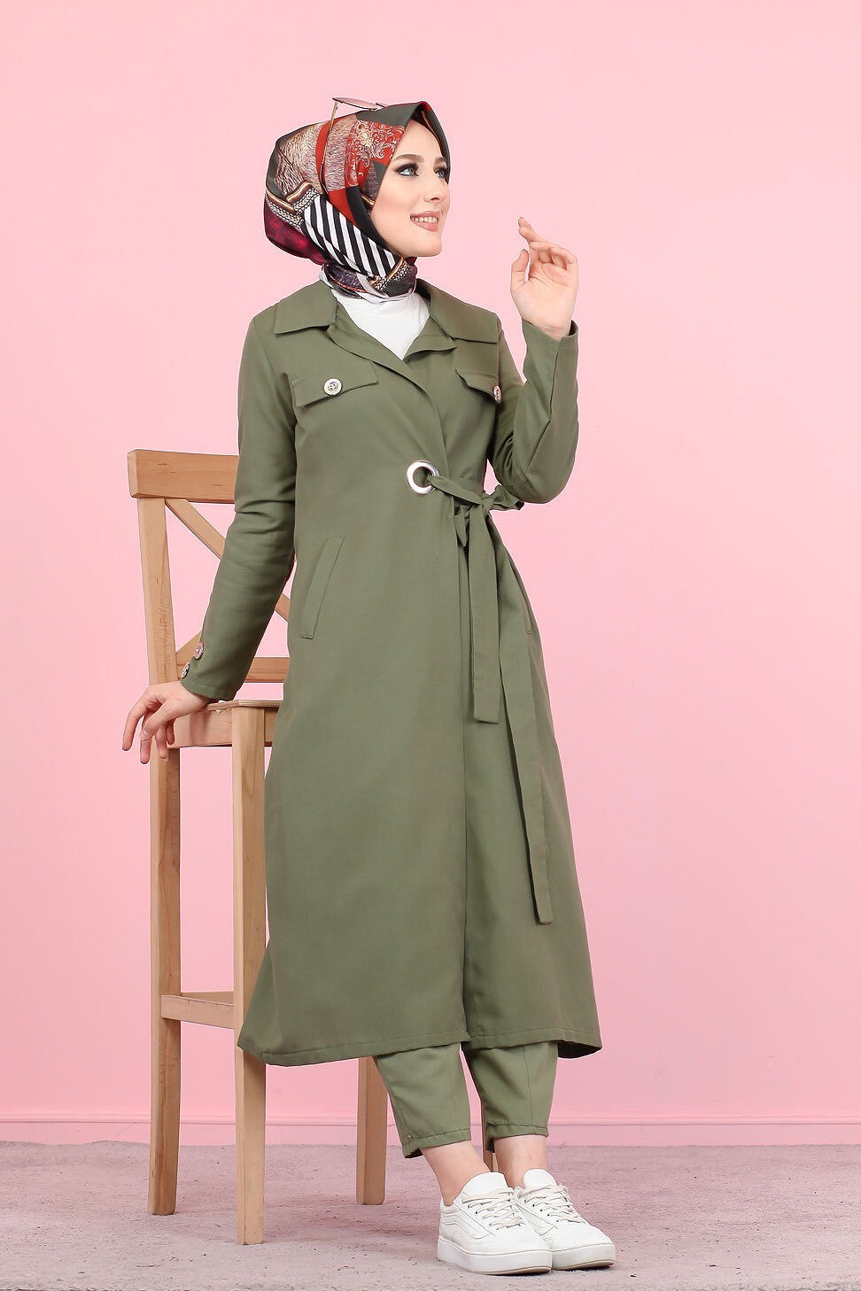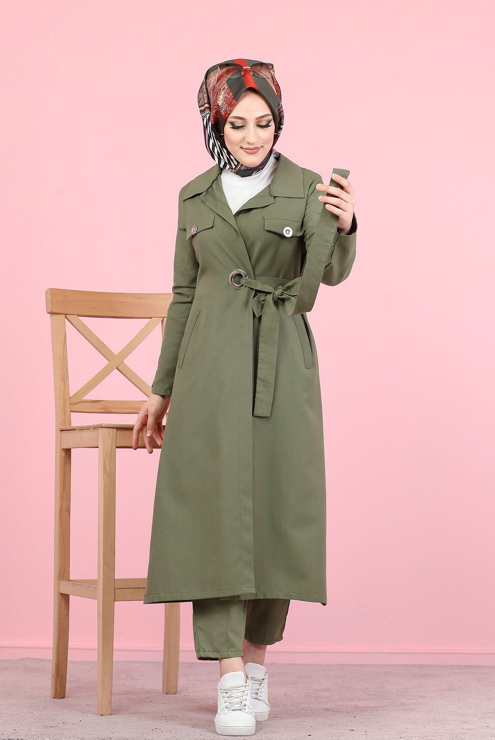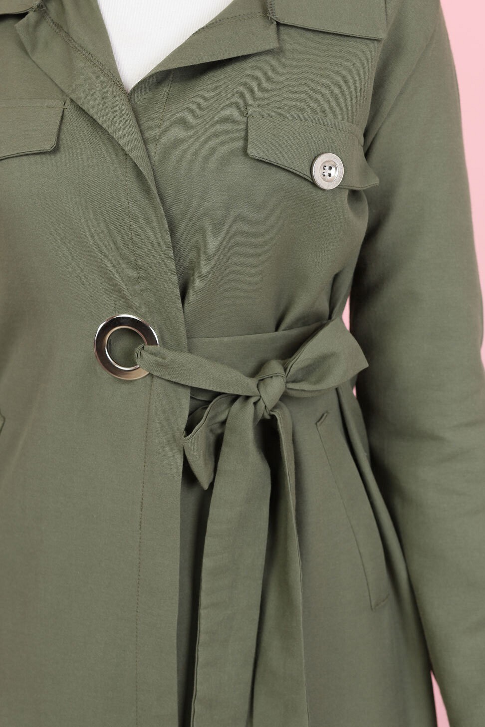 Veste avec ceinture (Vetement Hijab - Boutique en ligne France) - Couleur kaki - REF. 35395 (19.90 €)