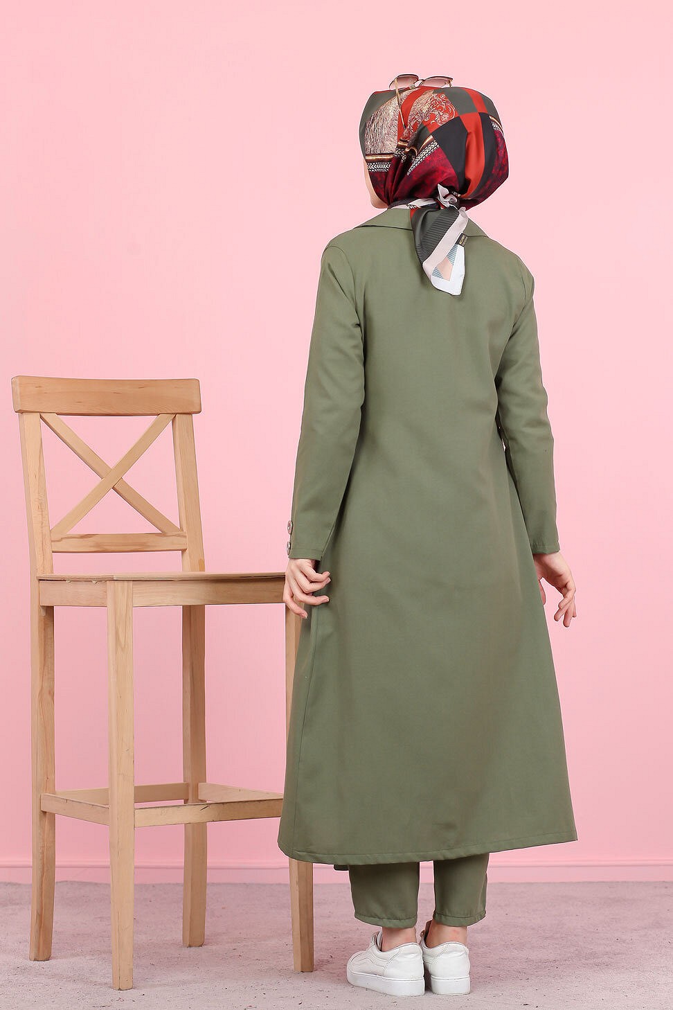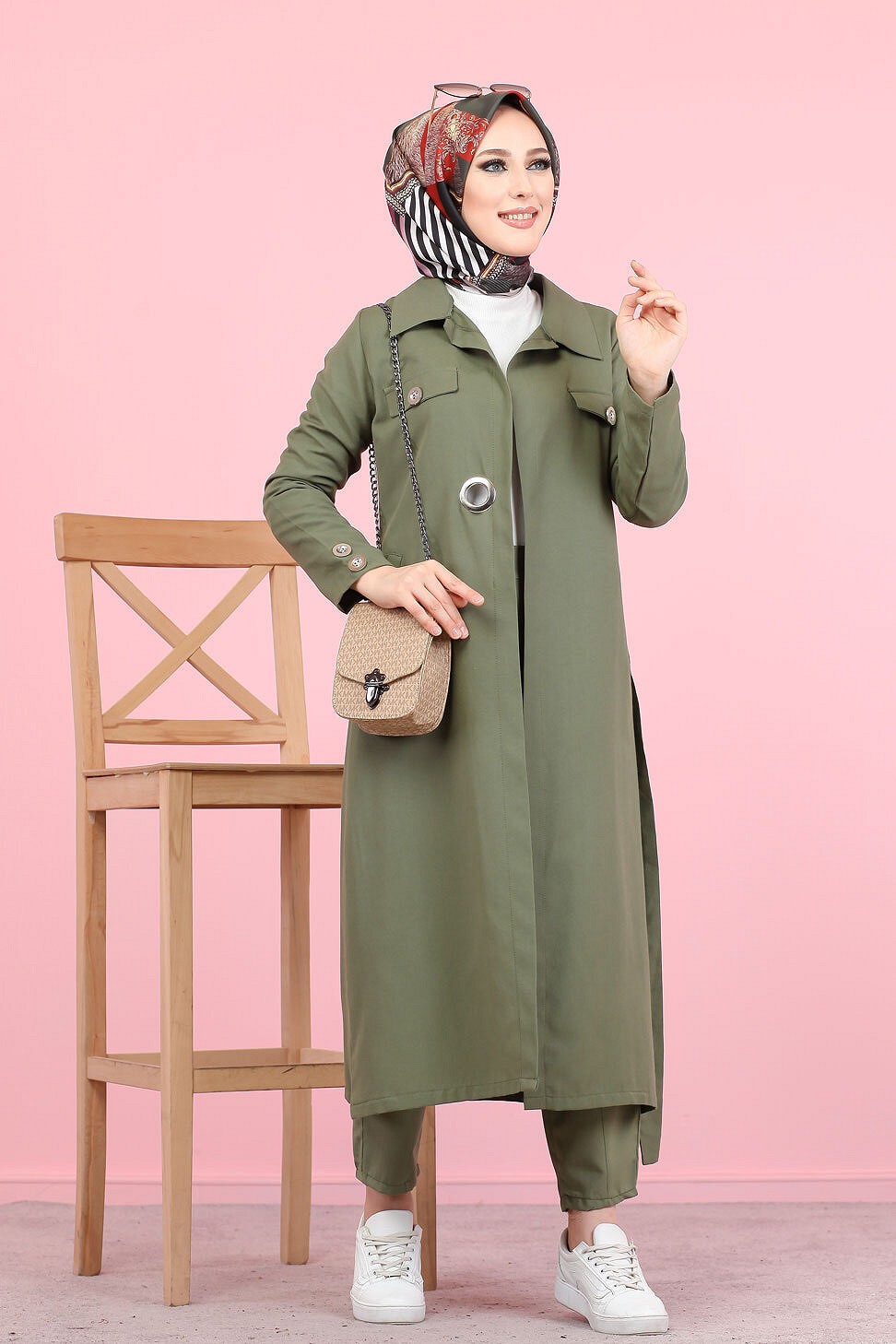 Robe mi longue style Trench (Vêtement hijab) pour femme voilée) - Couleur kaki - REF. 33202 (32.00 €) - En Promotion à 24.90 €