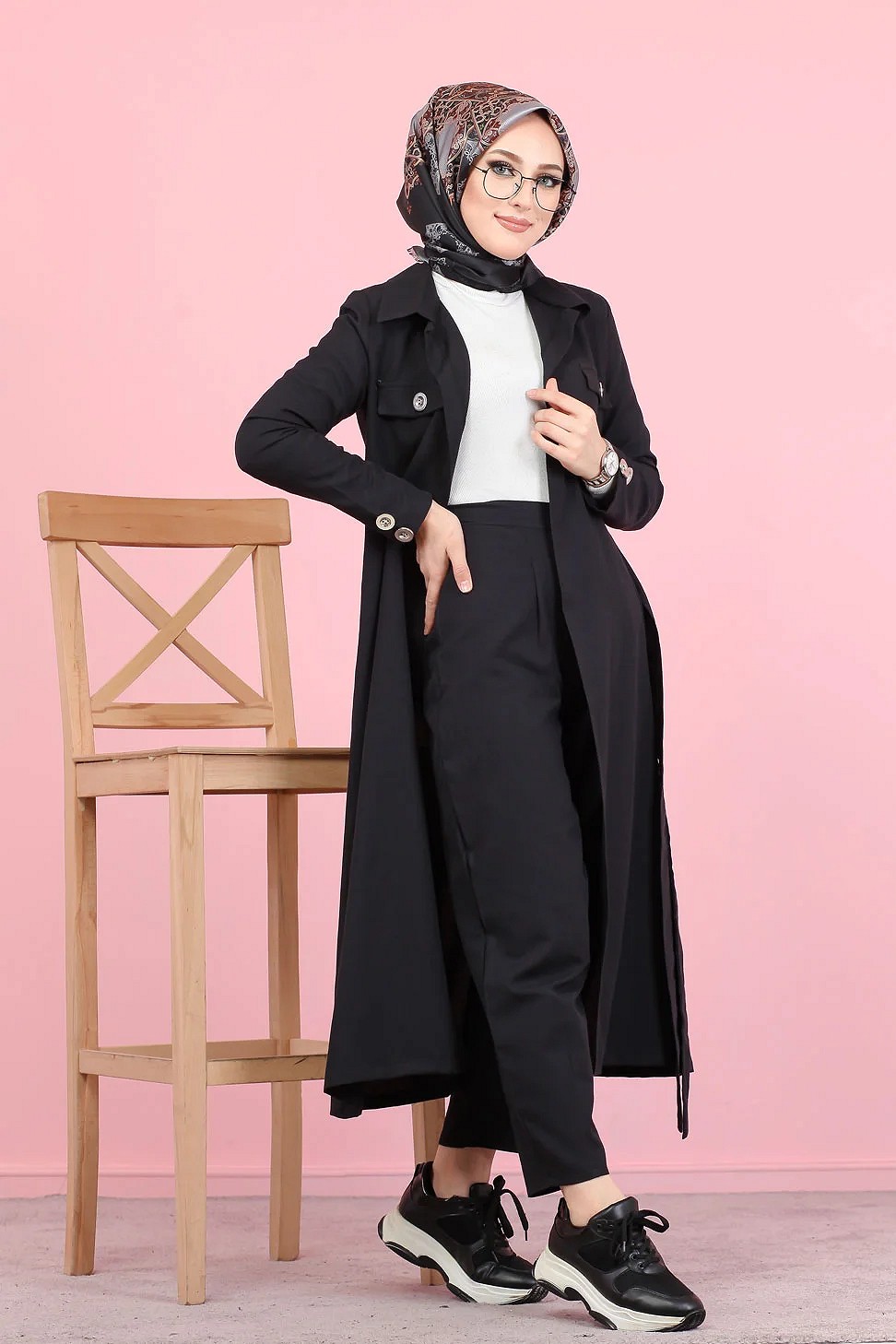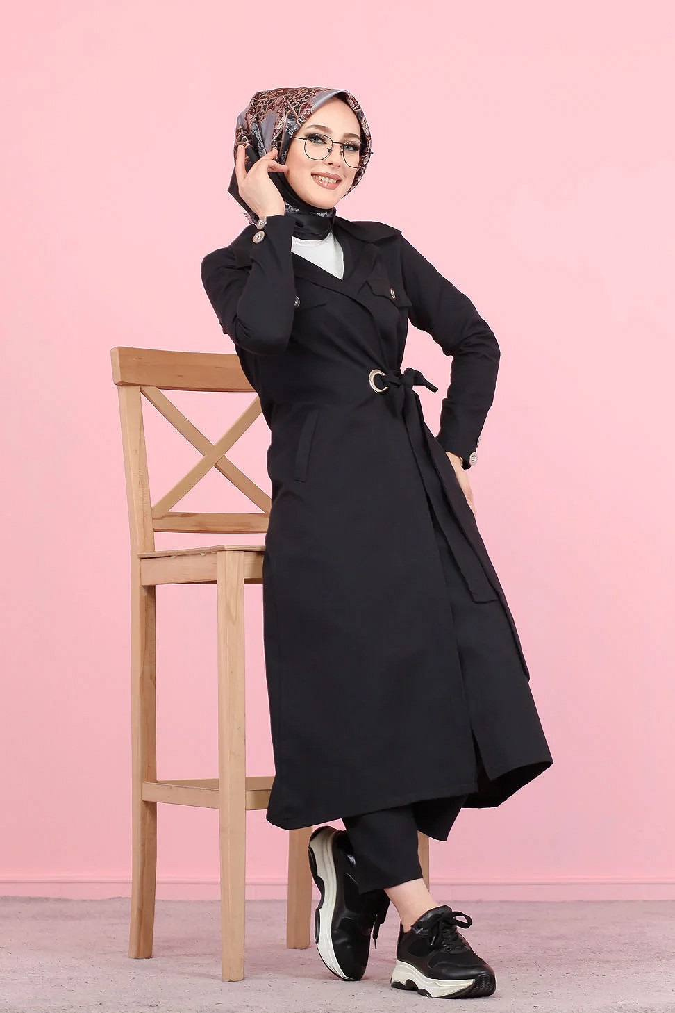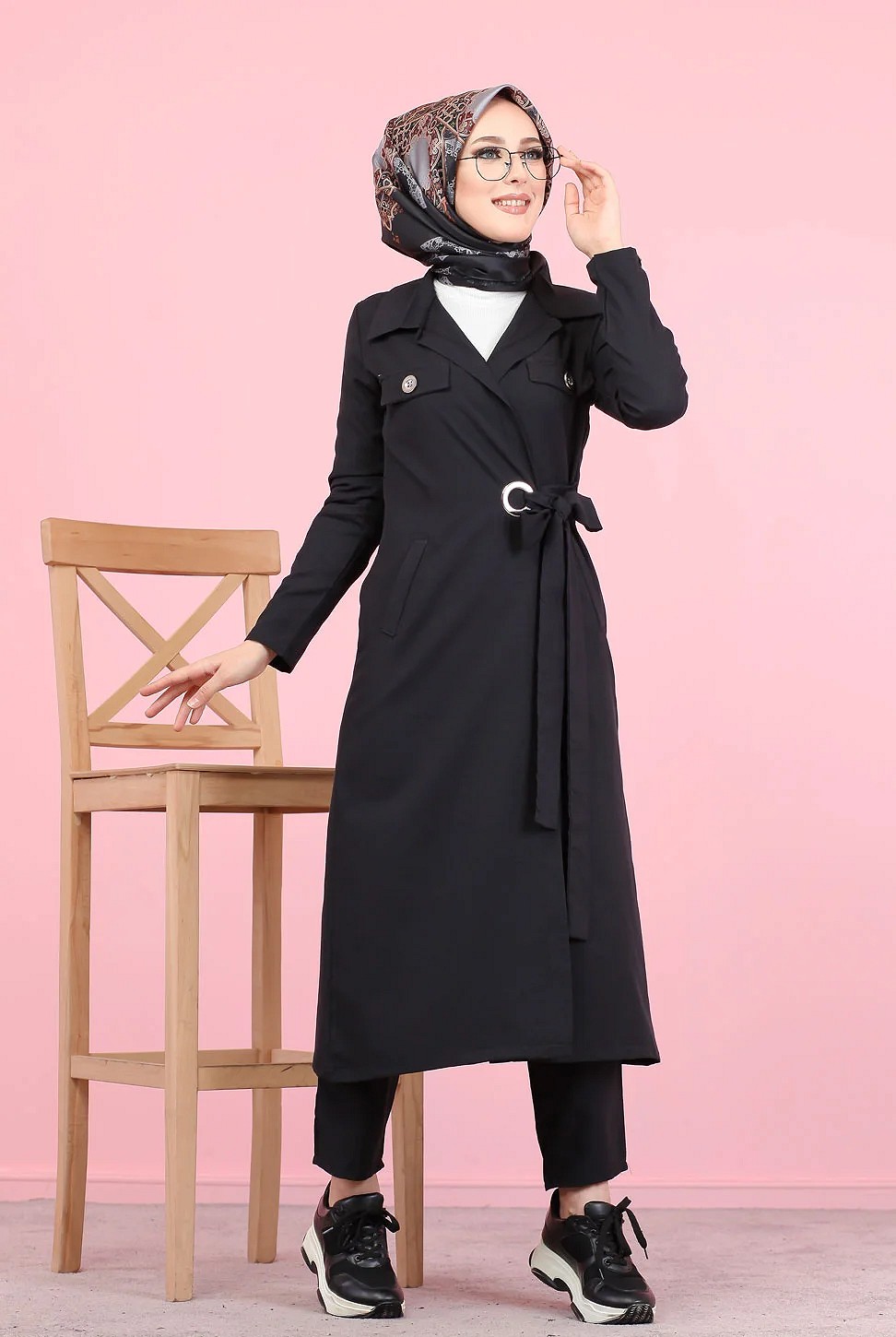 Trench-Coat mi-long pour femme (Tenue modeste fachion France) - Couleur noir