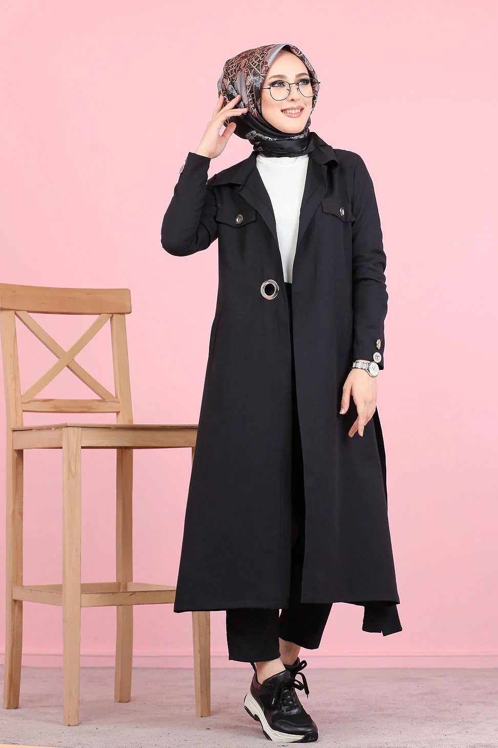Trench 3/4 (Vetement pour femme voilée) - Couleur noir chiné - REF. 32508 (29.90 €) - En Promotion à 24.90 €