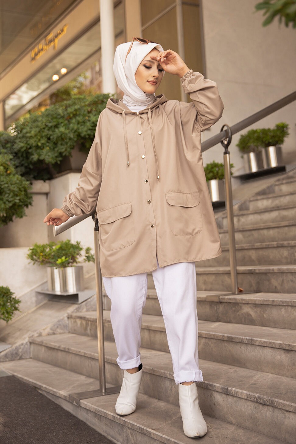 Trench - Parka ample pour femme (Vêtements Hijab) - Couleur beige Vetement & Accessoire