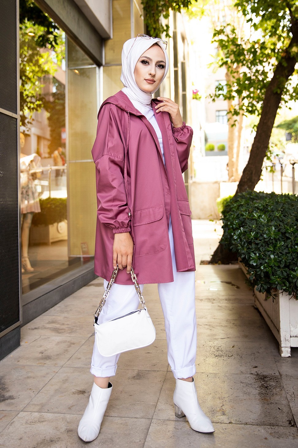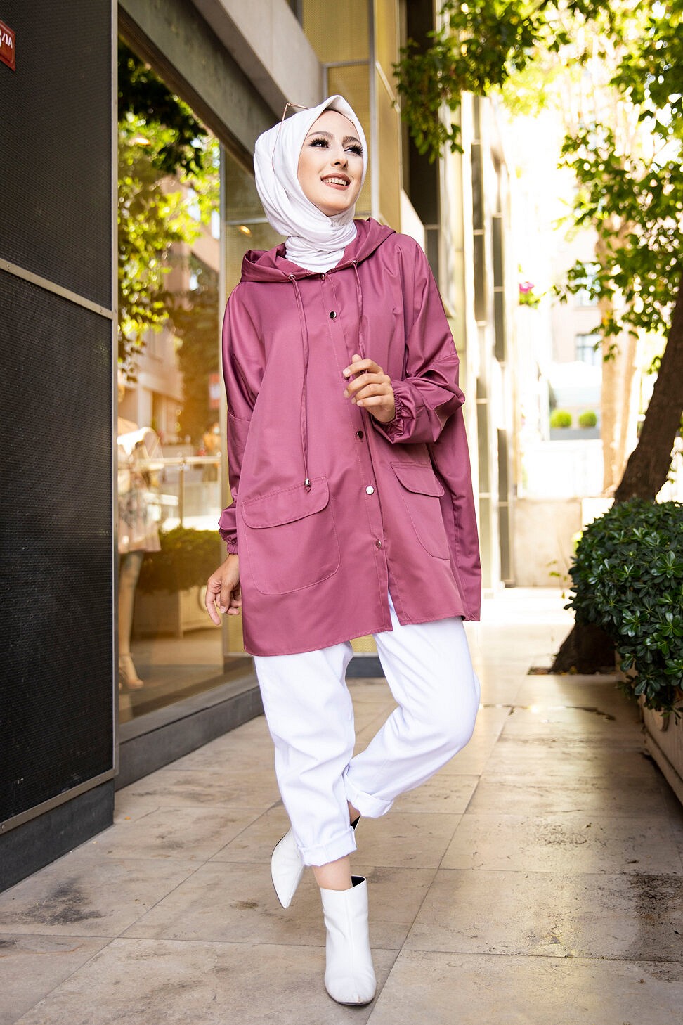 Trench - Parka ample pour femme (Vêtements Hijab) - Couleur vieux rose Vetement & Accessoire