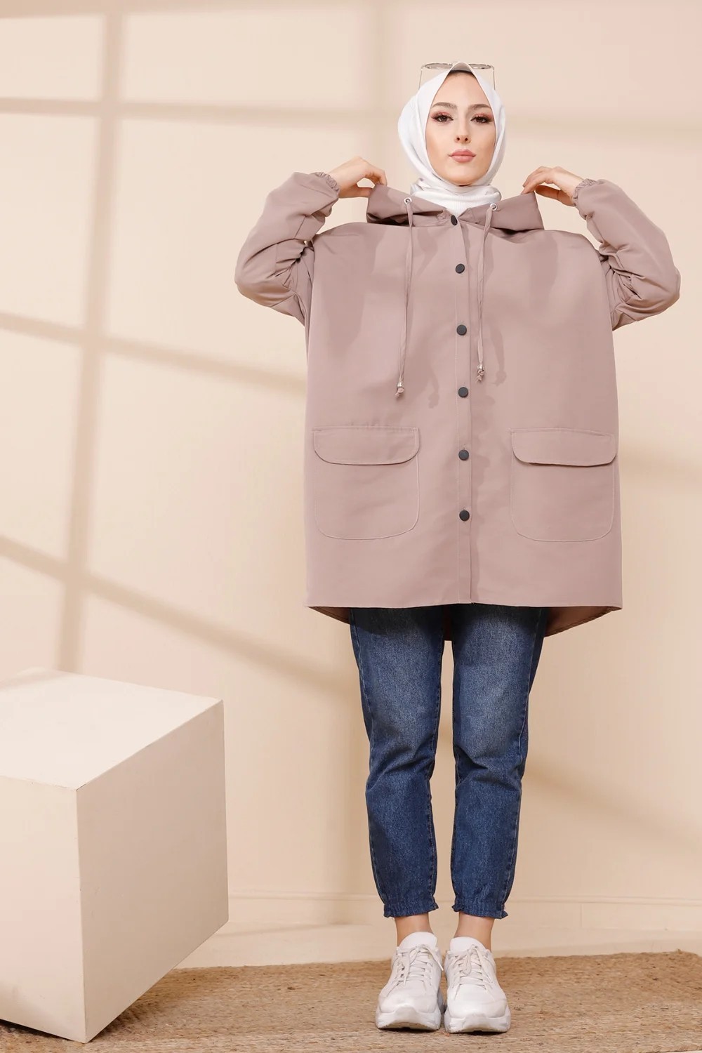 Trench ample - Parka femme (Vêtement Hijab Saisons Automne Hiver) - Couleur taupe Vetement & Accessoire
