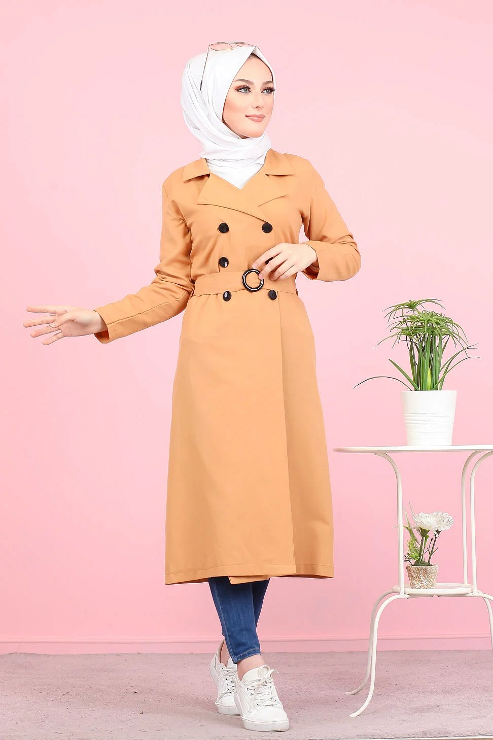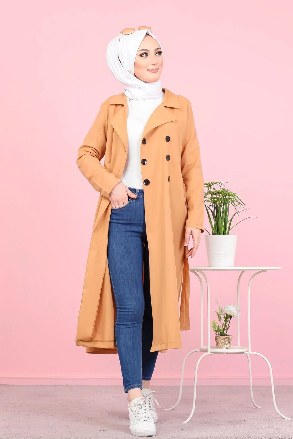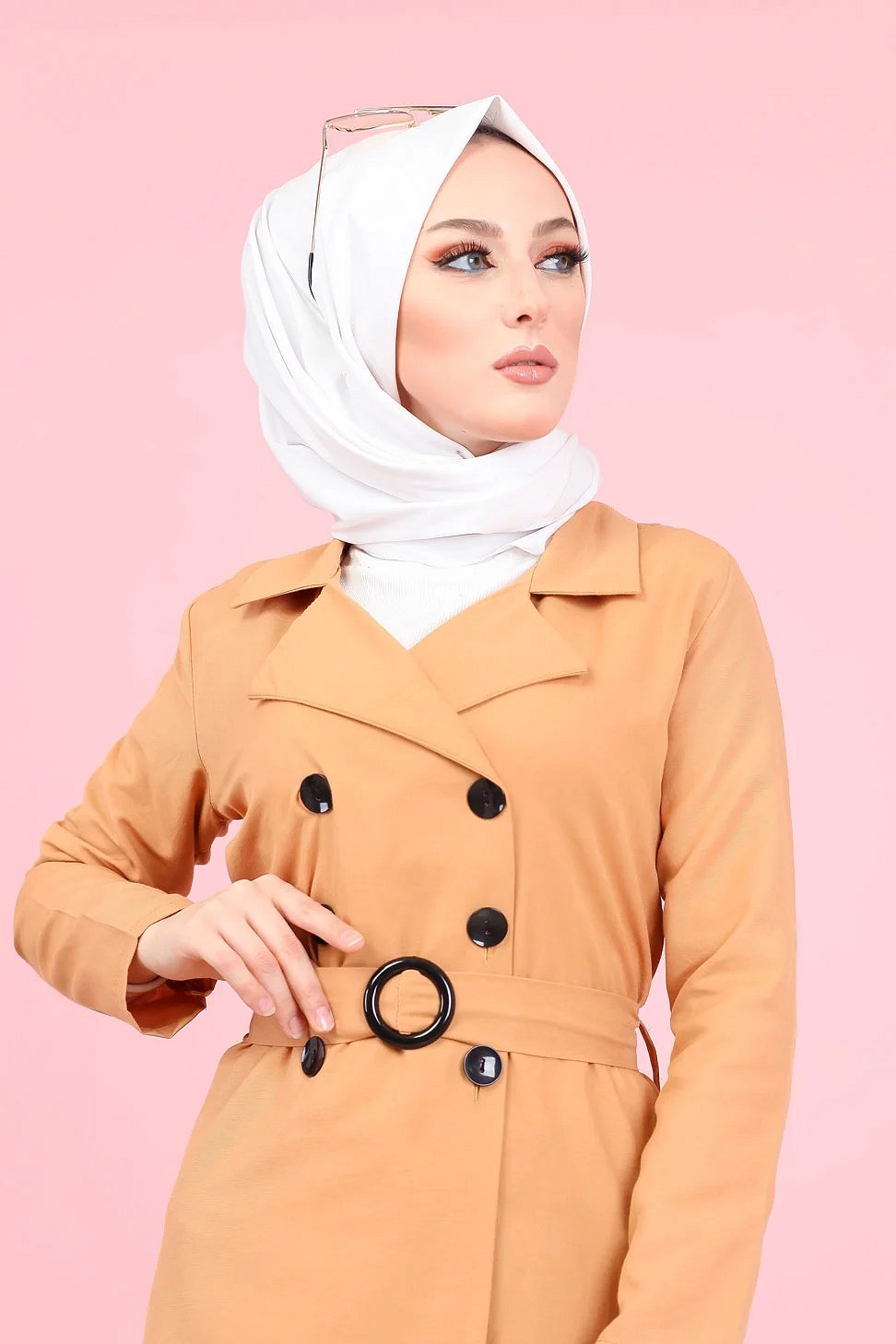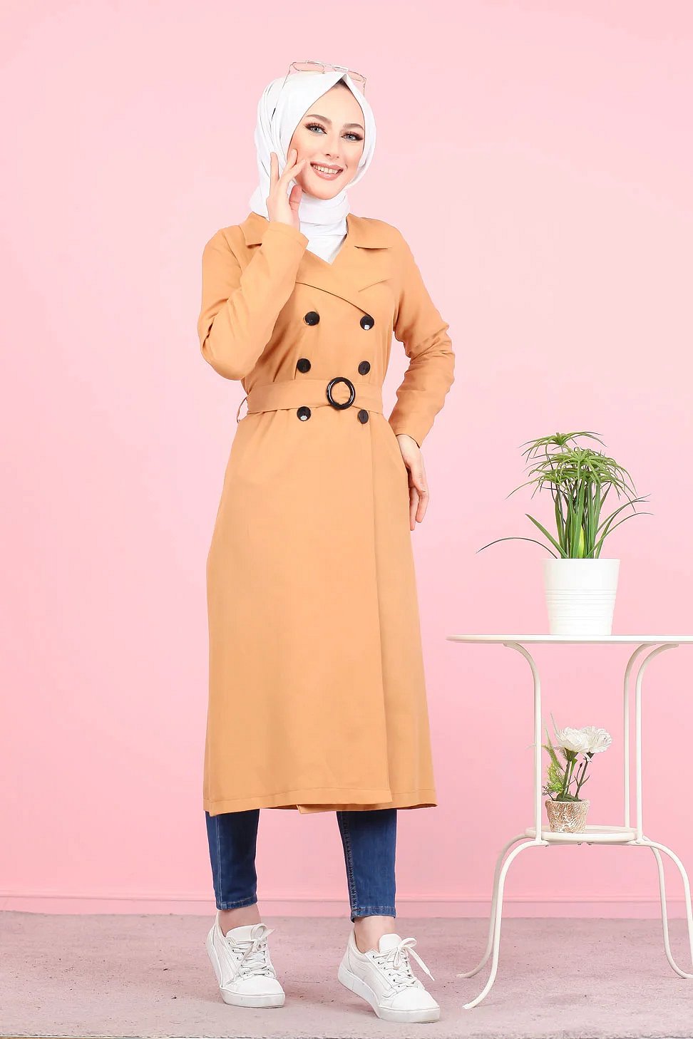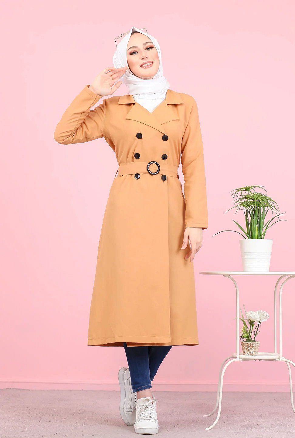 Trench-coat - Veste longue (Vetement Hijab pour femme) - Couleur Beige foncé Vetement & Accessoire