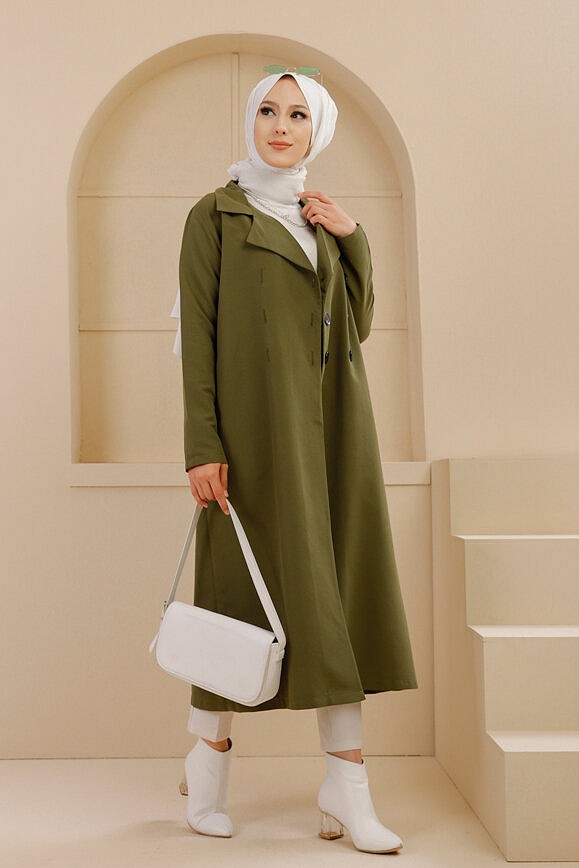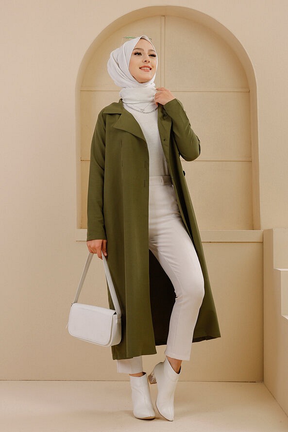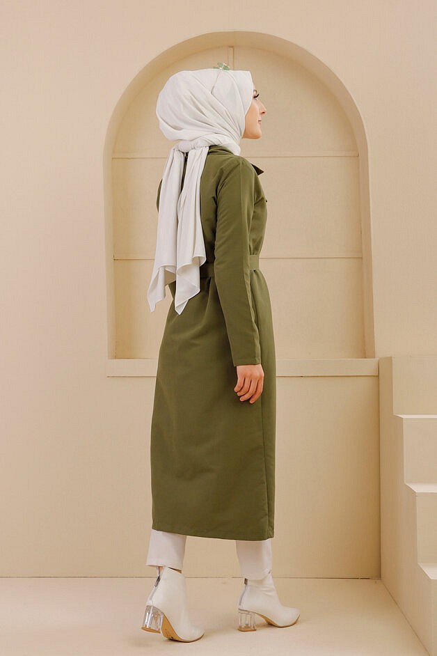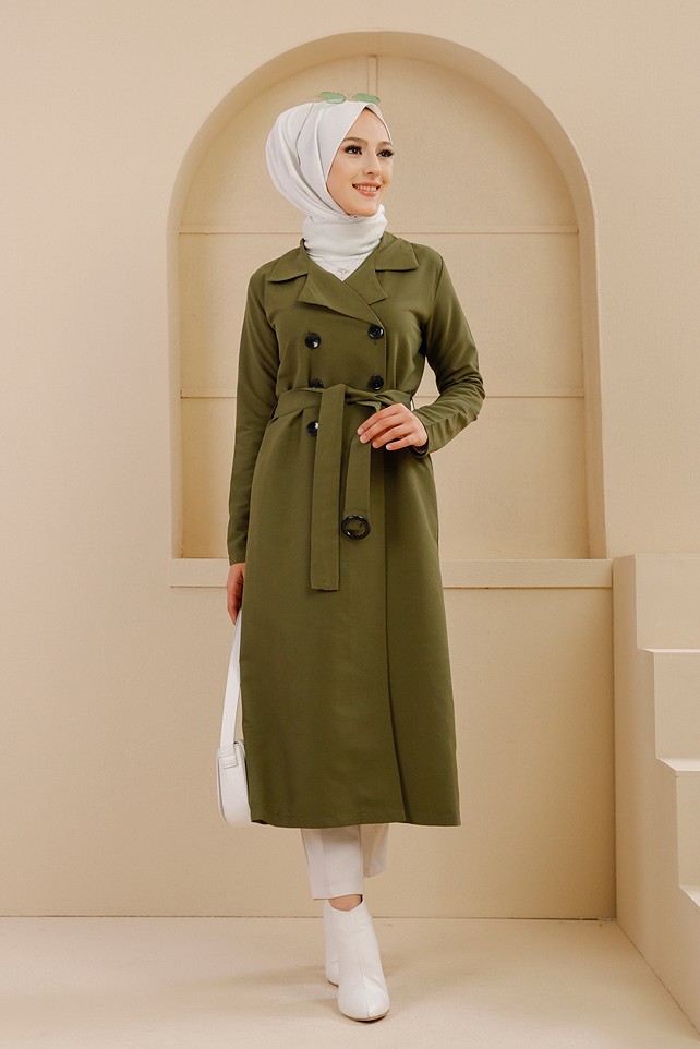 Trench femme (Manteau Hijab Saison Automne Hiver) - Couleur kaki Vetement & Accessoire